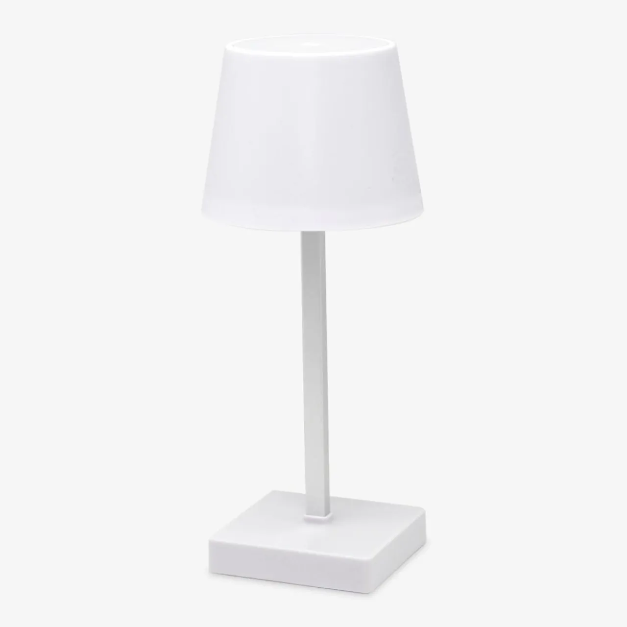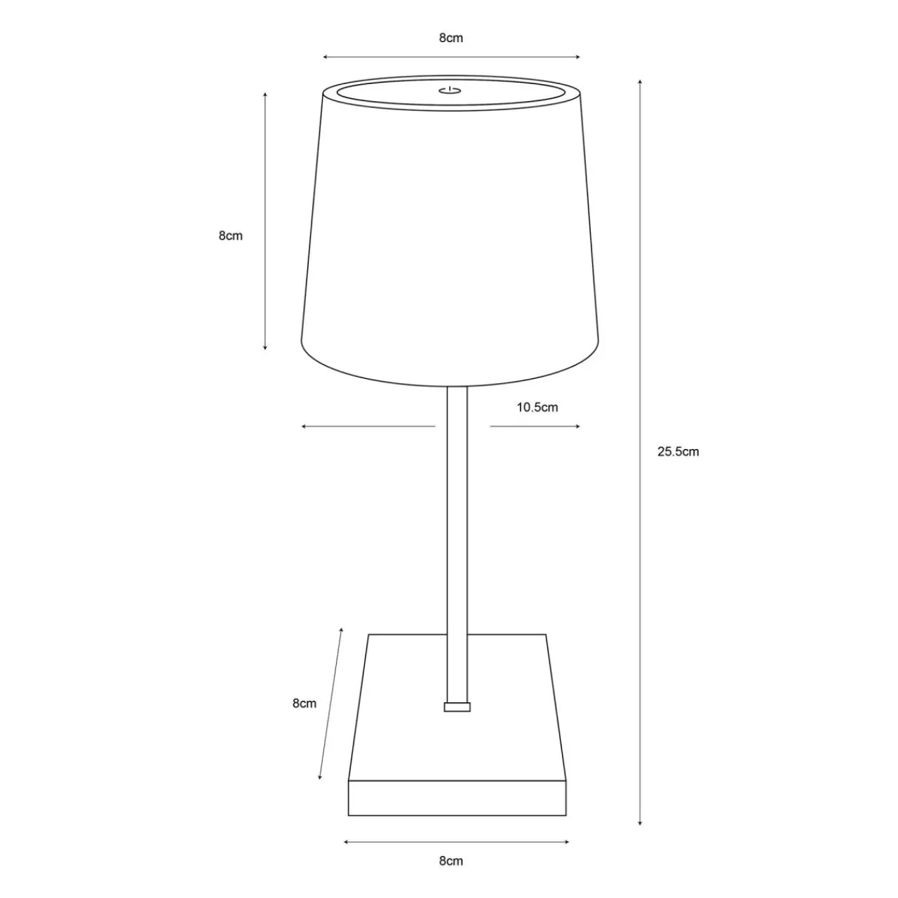 - Wbudowany moduł LED mieści się w kloszu imitującym abażur. Dotykowy włącznik znajduje się na jego wierzchołku.