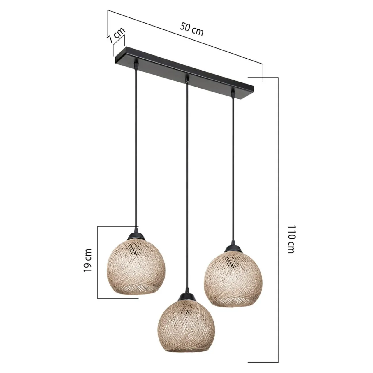 W tym modelu lampy wiszącej YUMAK możesz dopasować wysokość zawieszenia. Maksymalna wysokość lampy wynosi 110 cm.