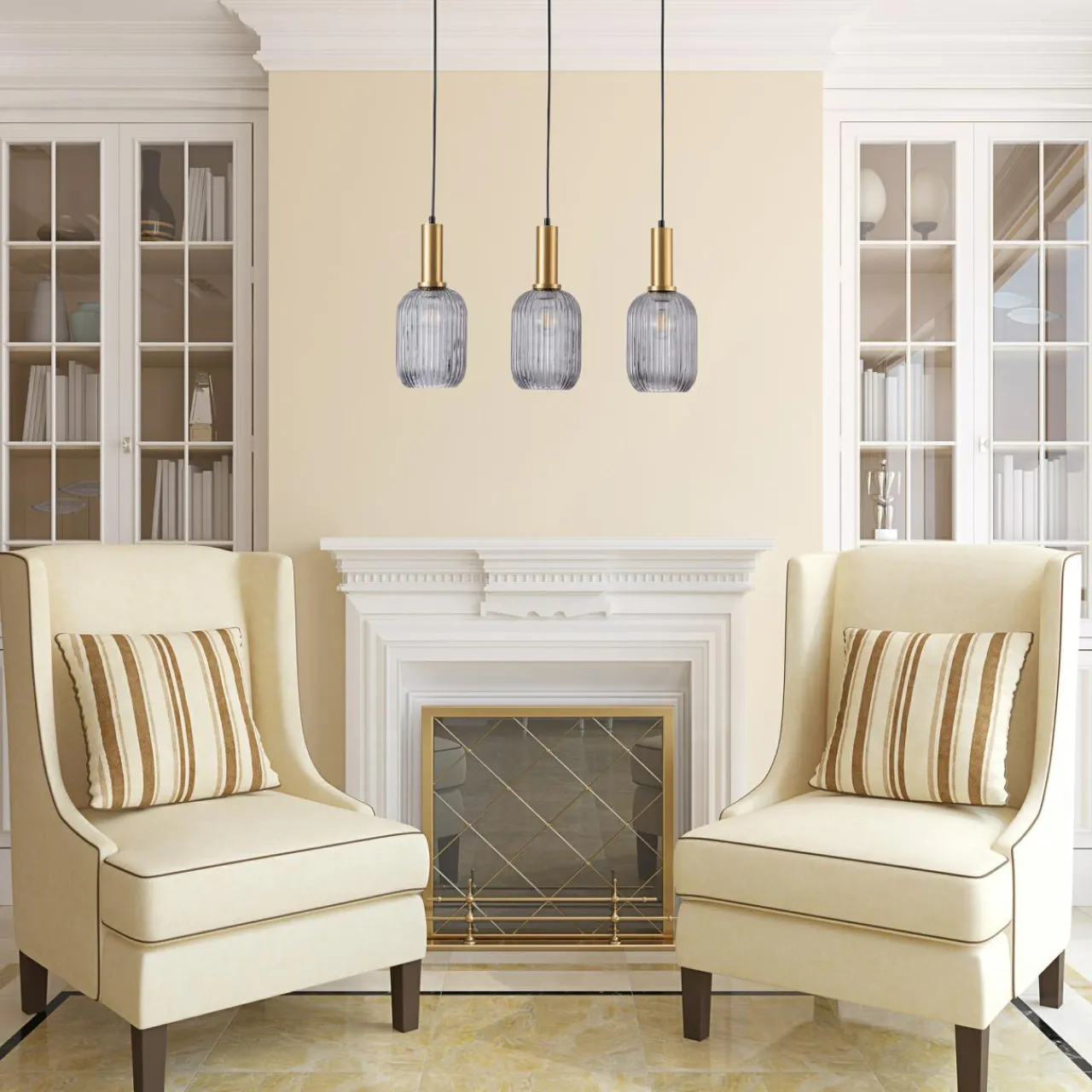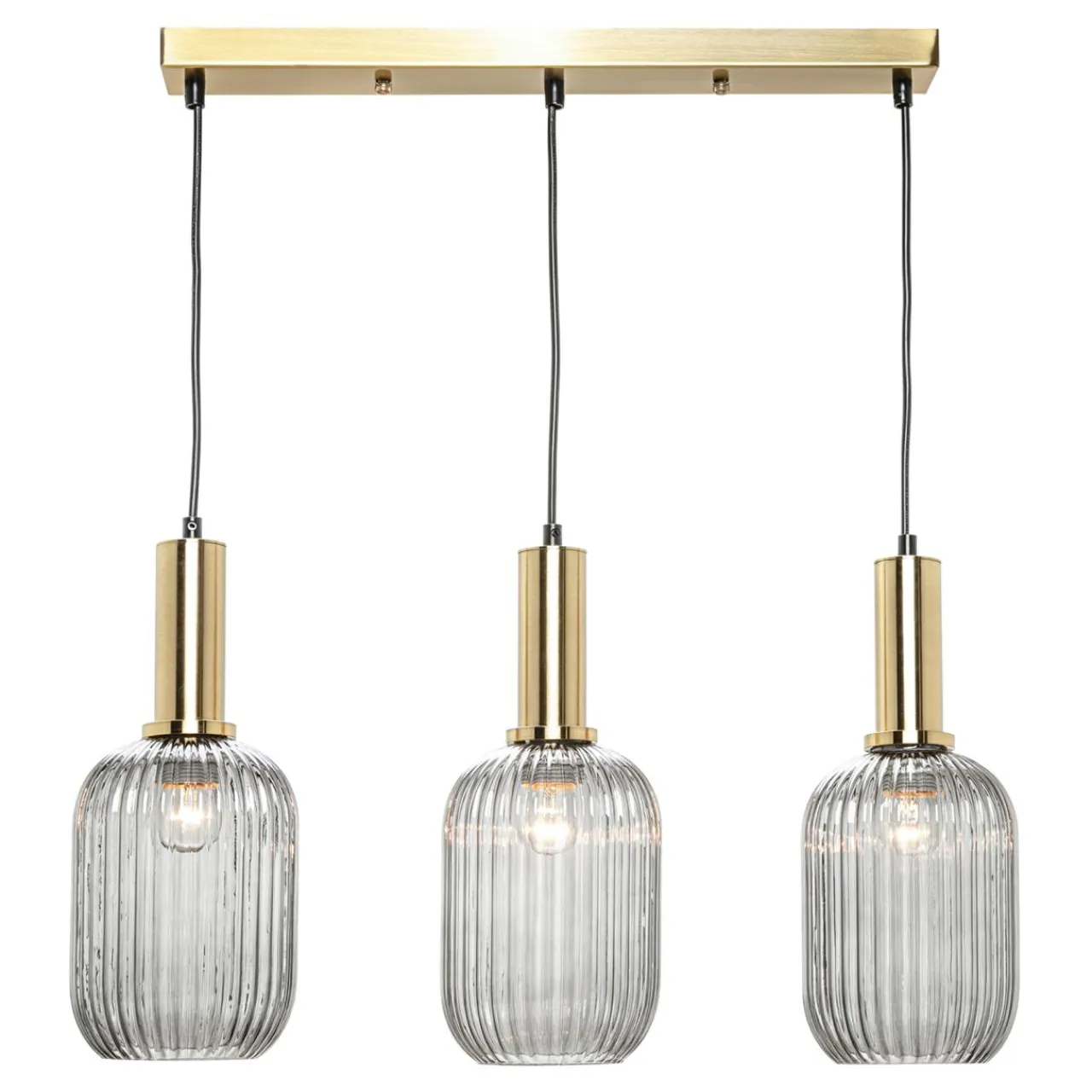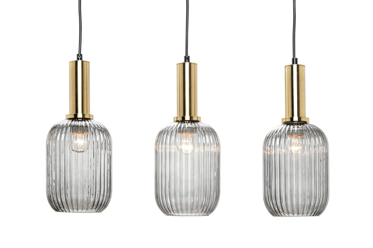 Jej szklane, zdobione prążkami półprzejrzyste klosze z efektem przydymienia stwarzają idealną okazję do wyeksponowania ozdobnych żarówek.