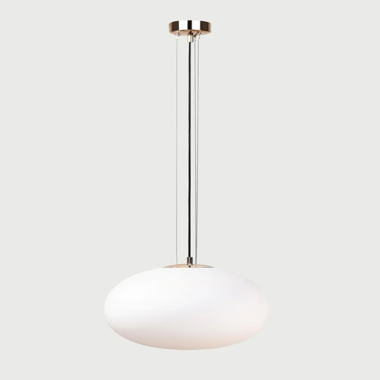 Lampa wisząca UFO idealnie sprawdza się w pomieszczeniach z wysokim sufitem. Przy średnicy 40 cm, jej maksymalna długość zawieszenia wynosi 100 cm.