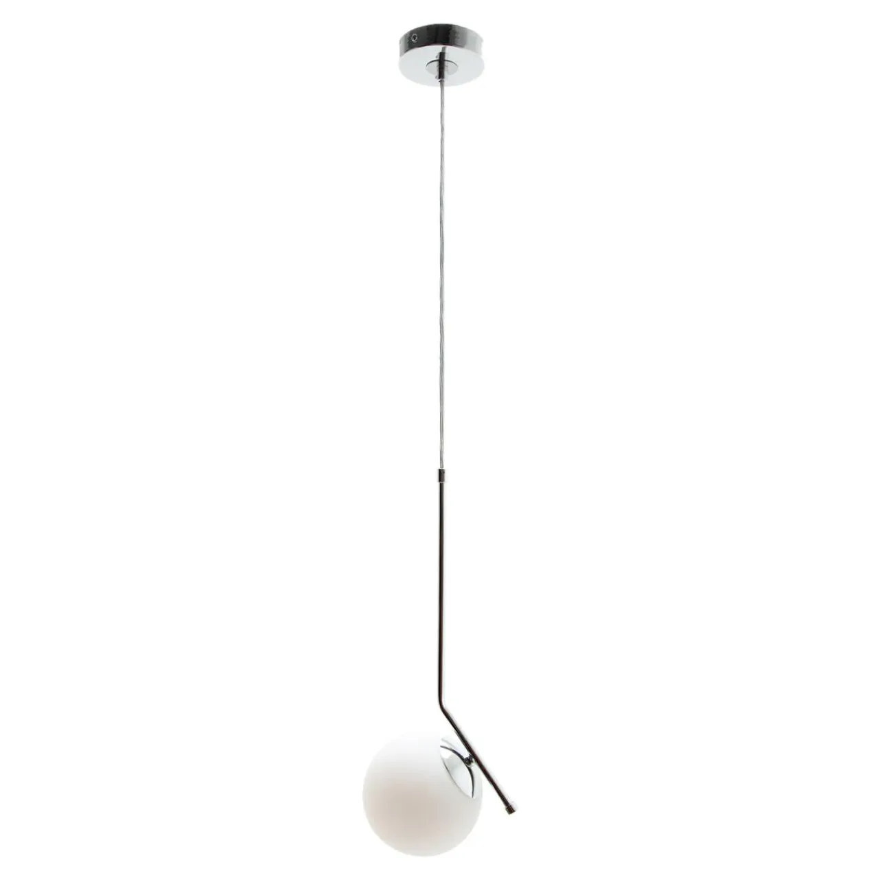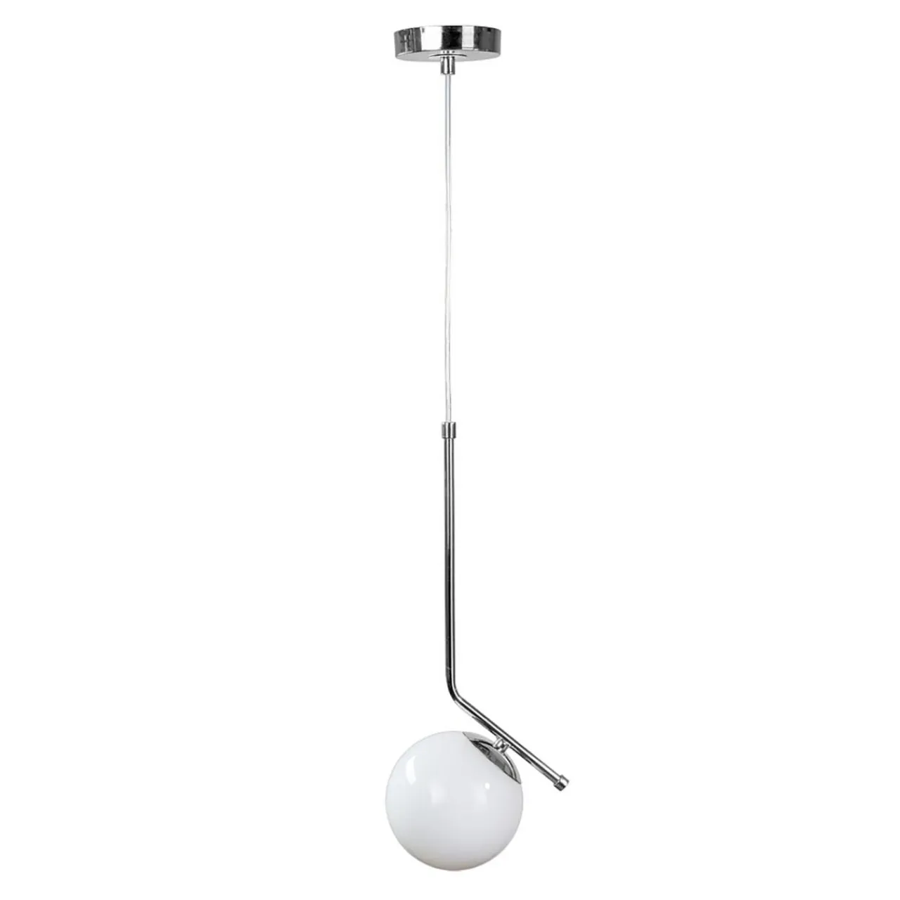 Biały kolor kulistych kloszy w urokliwy sposób łączy się ze chromowanym wykończeniem podstawy, a neutralny design stwarza stwarza dużo możliwości aranżacyjnych.