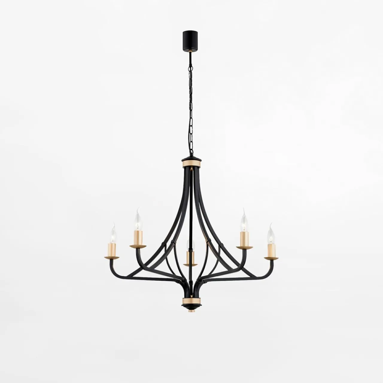 - Posiada na oprawę dla 5 żarówek LED typu E14 o mocy maksymalnej 7W.