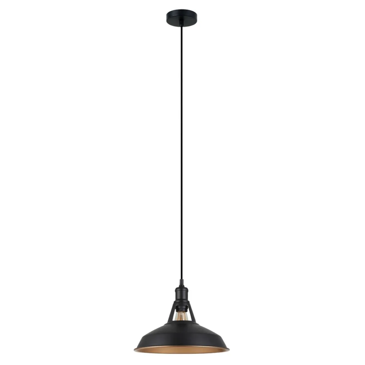 - Posiada niewielką podsufitkę i metalowy klosz zaprojektowany w stylu retro/industrial.