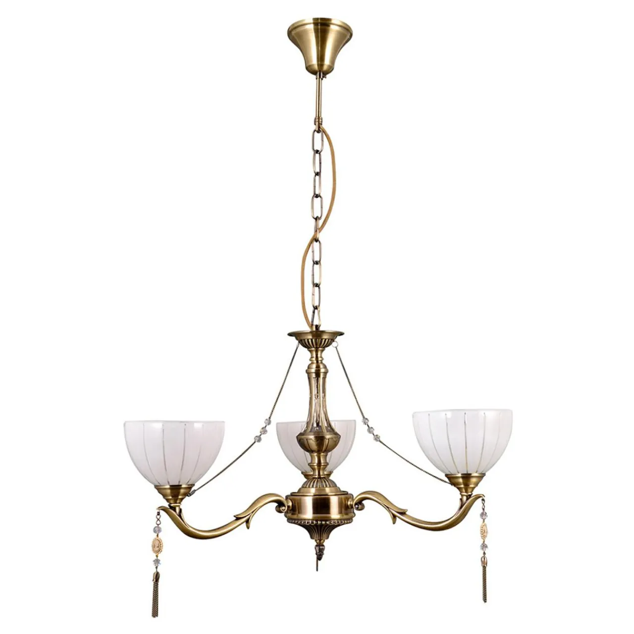 W skład kolekcji wchodzą 2 modele wiszące oraz kinkiet. Lampy posiadają mlecznobiałe klosze o kształcie kielicha oraz zdobioną podstawę i ramiona w odcieniu złota.