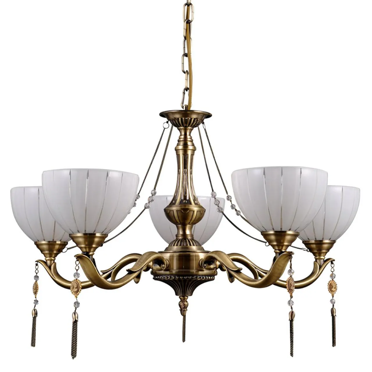 Lampa posiada oprawę dla 5 żarówek typu E27 o mocy maksymalnej 60W.