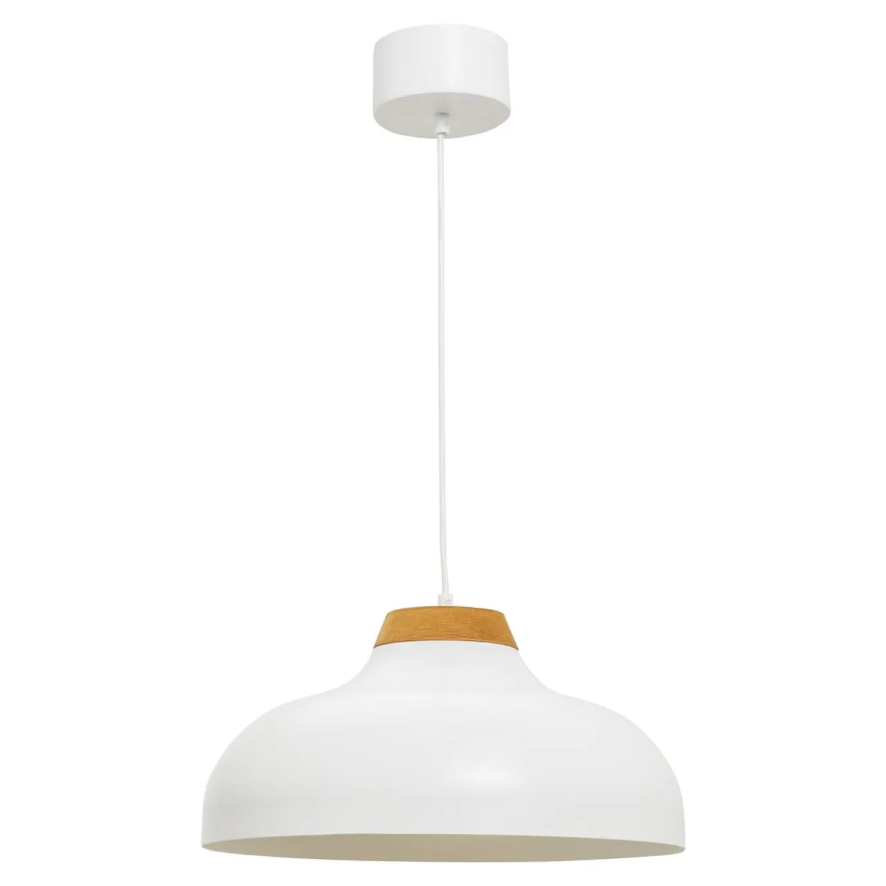 Design lampy charakteryzujący się prostotą i klasycznym, półkolistym kształtem klosza jest wysmakowanym uzupełnieniem dekoracyjnym dla prostych mebli, utrzymanych w jasnej tonacji.