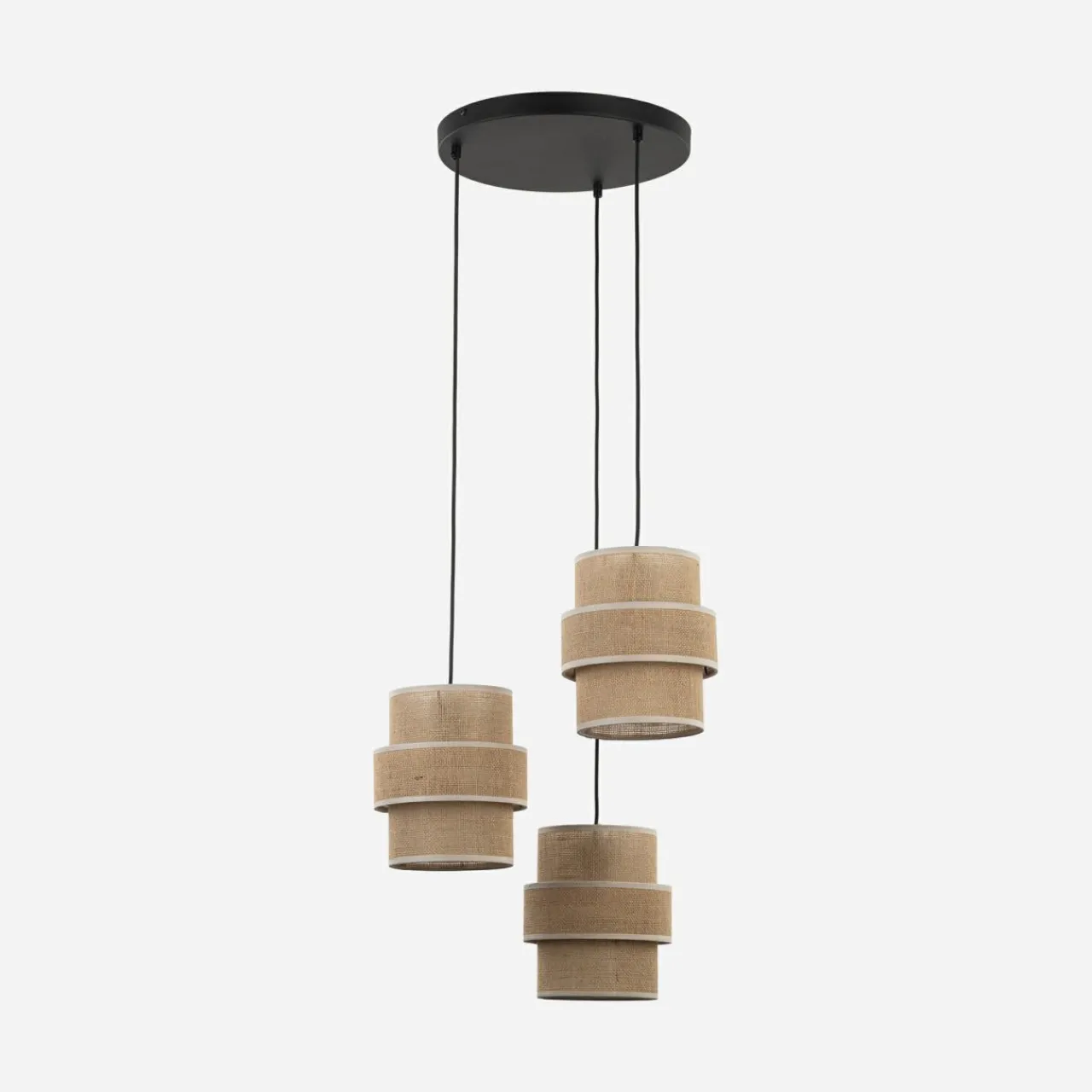 Lampa wisząca CALISTO JUTA posiada oprawę przeznaczoną dla 3 żarówek LED typu E27 o mocy maksymalnej 15W.