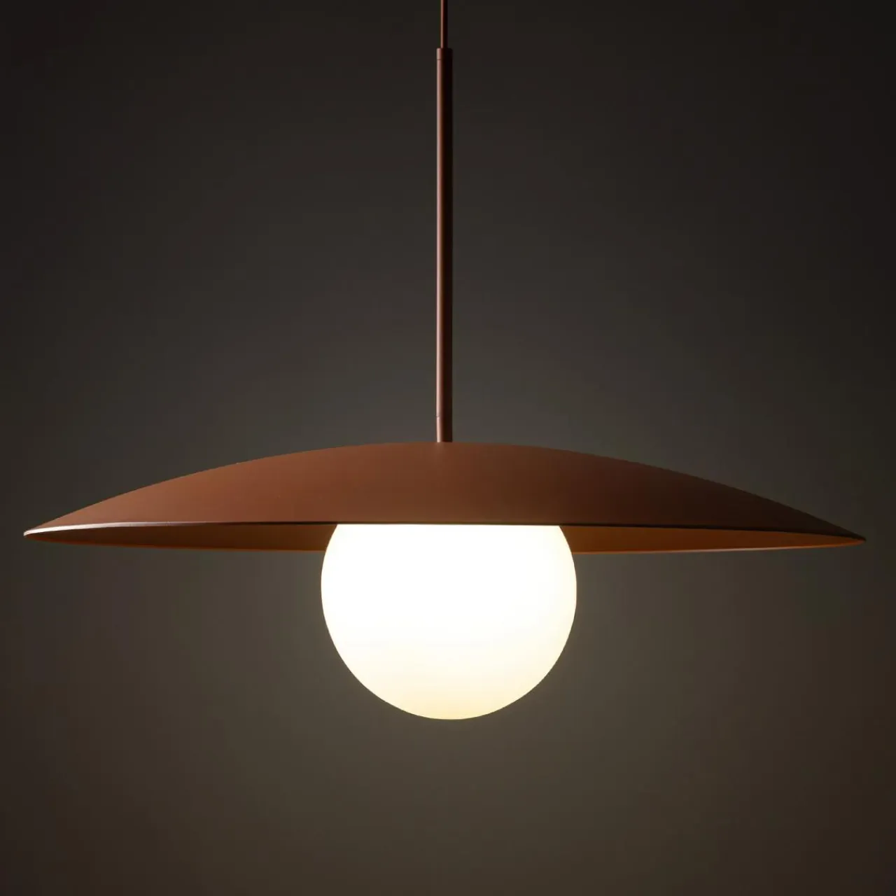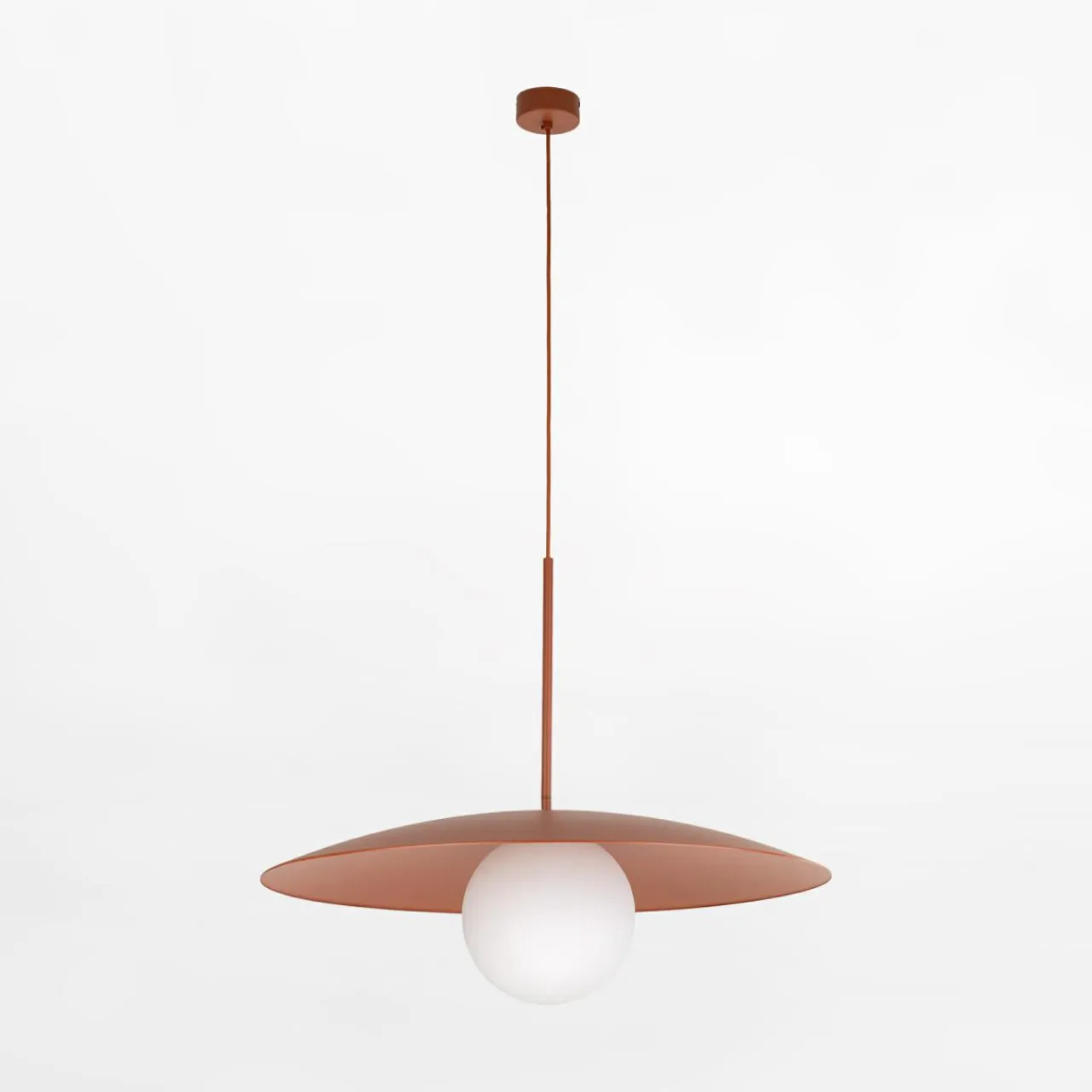 - Klosz lampy jest lekko wklęsły, wykonany z lakierowanego metalu.