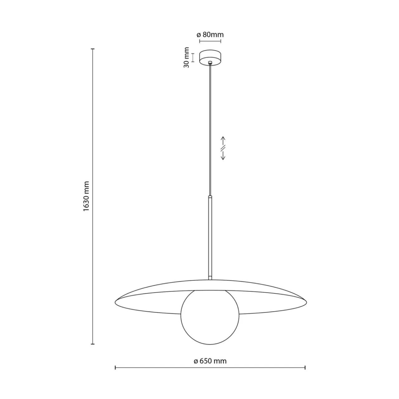 - Średnica 65 cm pozwala zawiesić ją w salonie lub jadalni. W każdym z tych pomieszczeń sprawdzi się nie tylko jako oświetlenie, ale również praktyczna ozdoba.