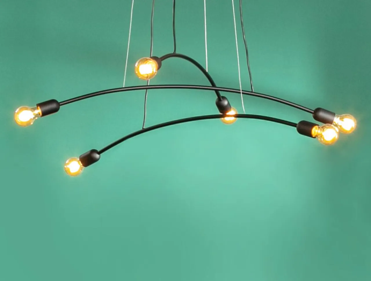 Sześć źródeł światła umiejscowionych koncentrycznie na metalowym stelażu pozwala oświetlić każdy kąt, dzięki czemu jest doskonałym wyborem dla przestronnego wnętrza.
