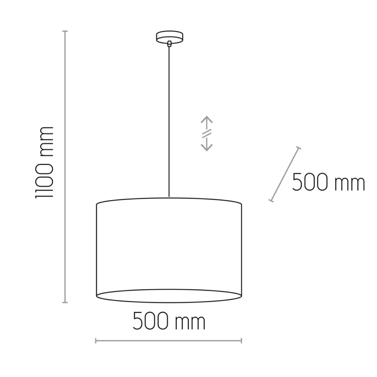 50-centymetrowa średnica abażuru to wielkość, która sprawdzi się w przestronnych wnętrzach salonu lub jadalni.