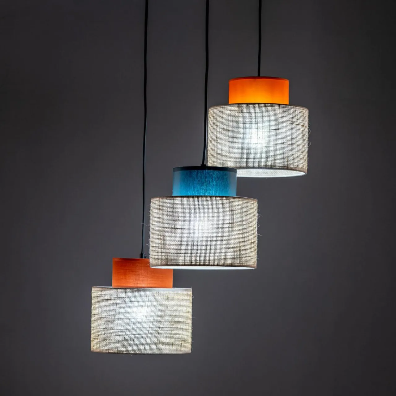 - Na szczególną uwagę zasługuje jutowy materiał, który został wykorzystany przy wykonaniu 3 abażurów. Wprowadza on do wystroju wnętrza przytulny klimat, naturalność oraz egzotykę.