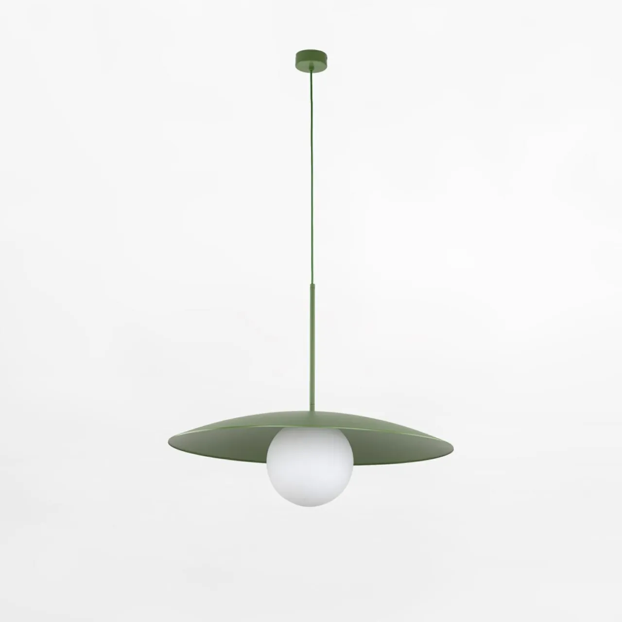 - Klosz lampy jest lekko wklęsły, wykonany z lakierowanego metalu.
