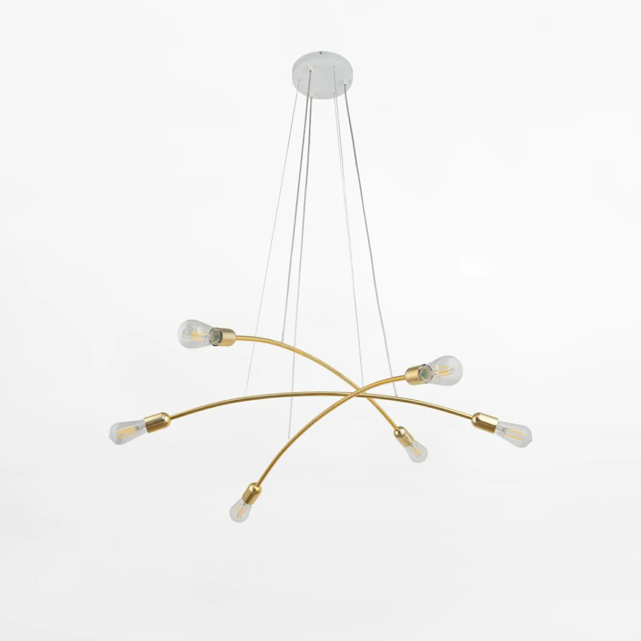 - 6 źródeł światła na metalowym stelażu oświetla każdy kąt, dzięki czemu lampa jest doskonałym wyborem dla przestronnego wnętrza.