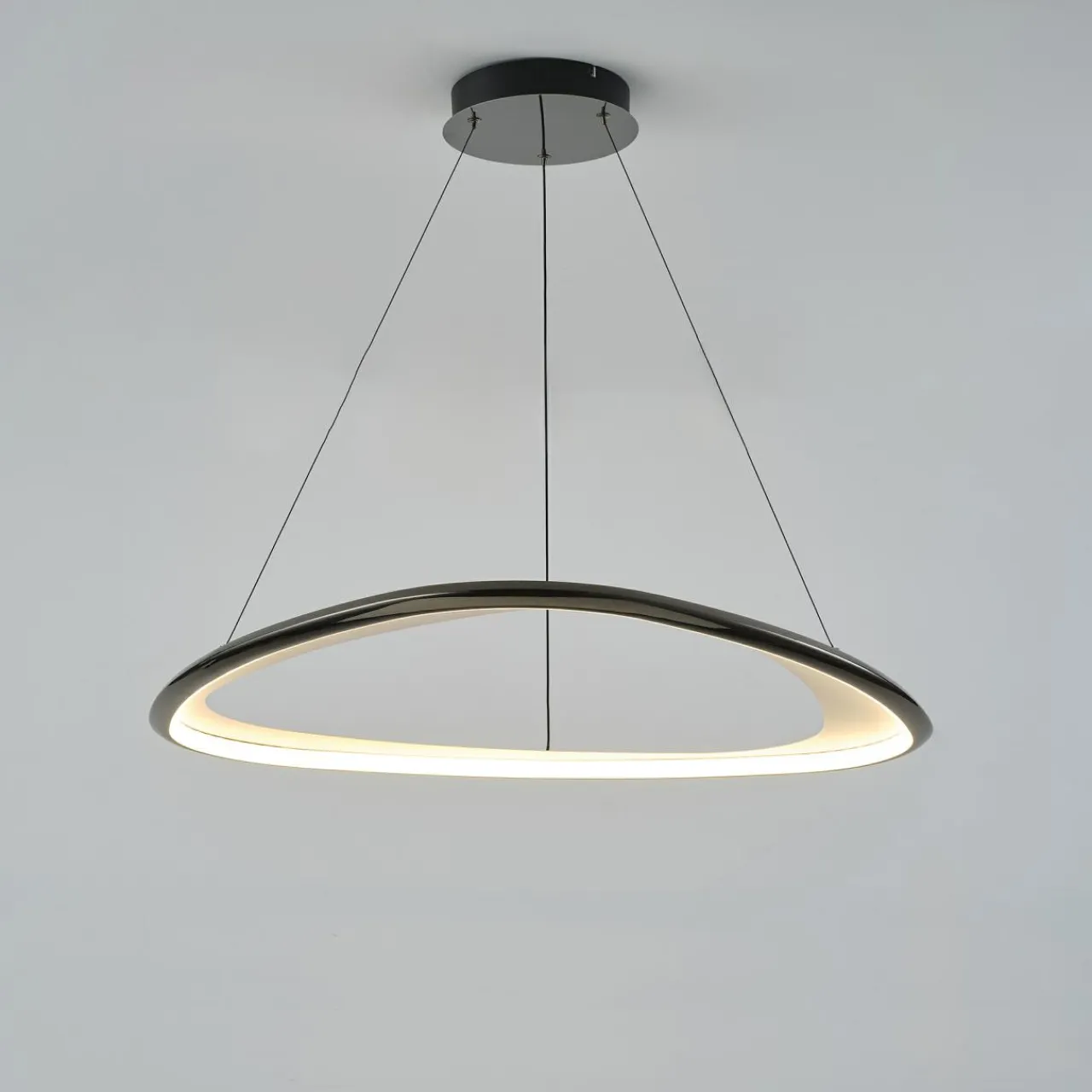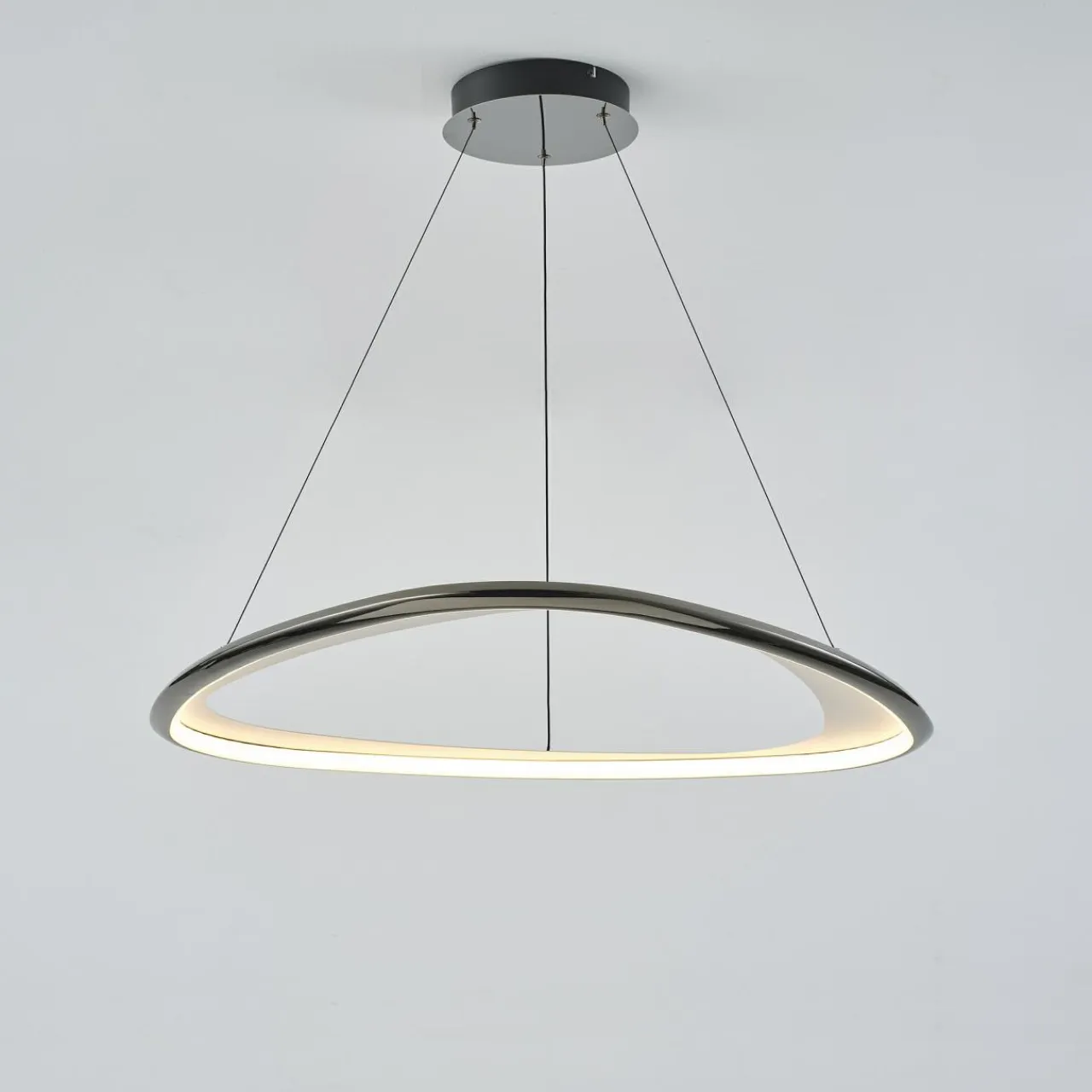 - Połysk zawsze w modzie – lampa GETAFE składa się z metalowego pierścienia w oryginalnej kolorystyce chromowanej czerni.