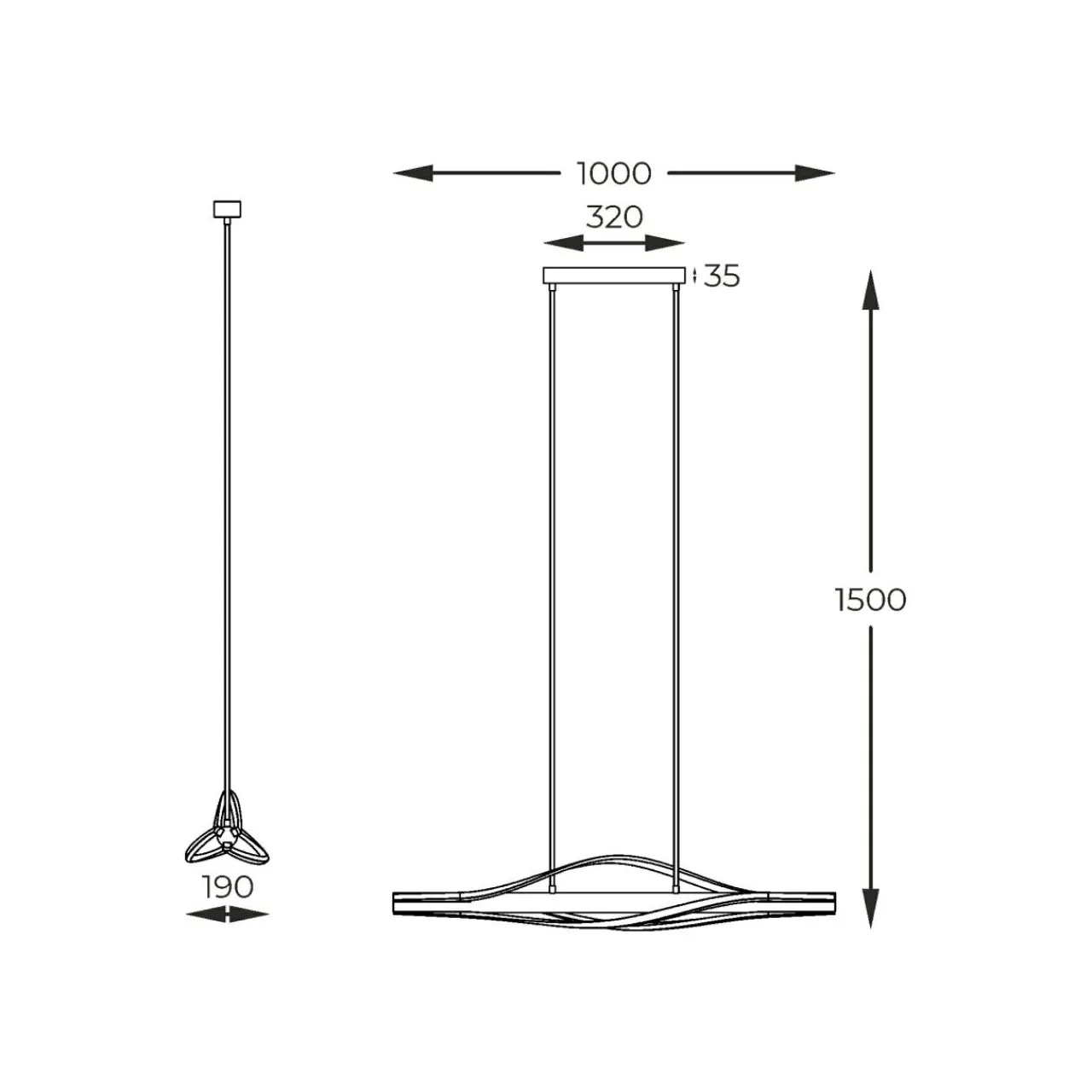 - BAEZ jest lampą wiszącą zaprojektowaną do dużych, przestronnych wnętrz. Ma długość 100 cm.