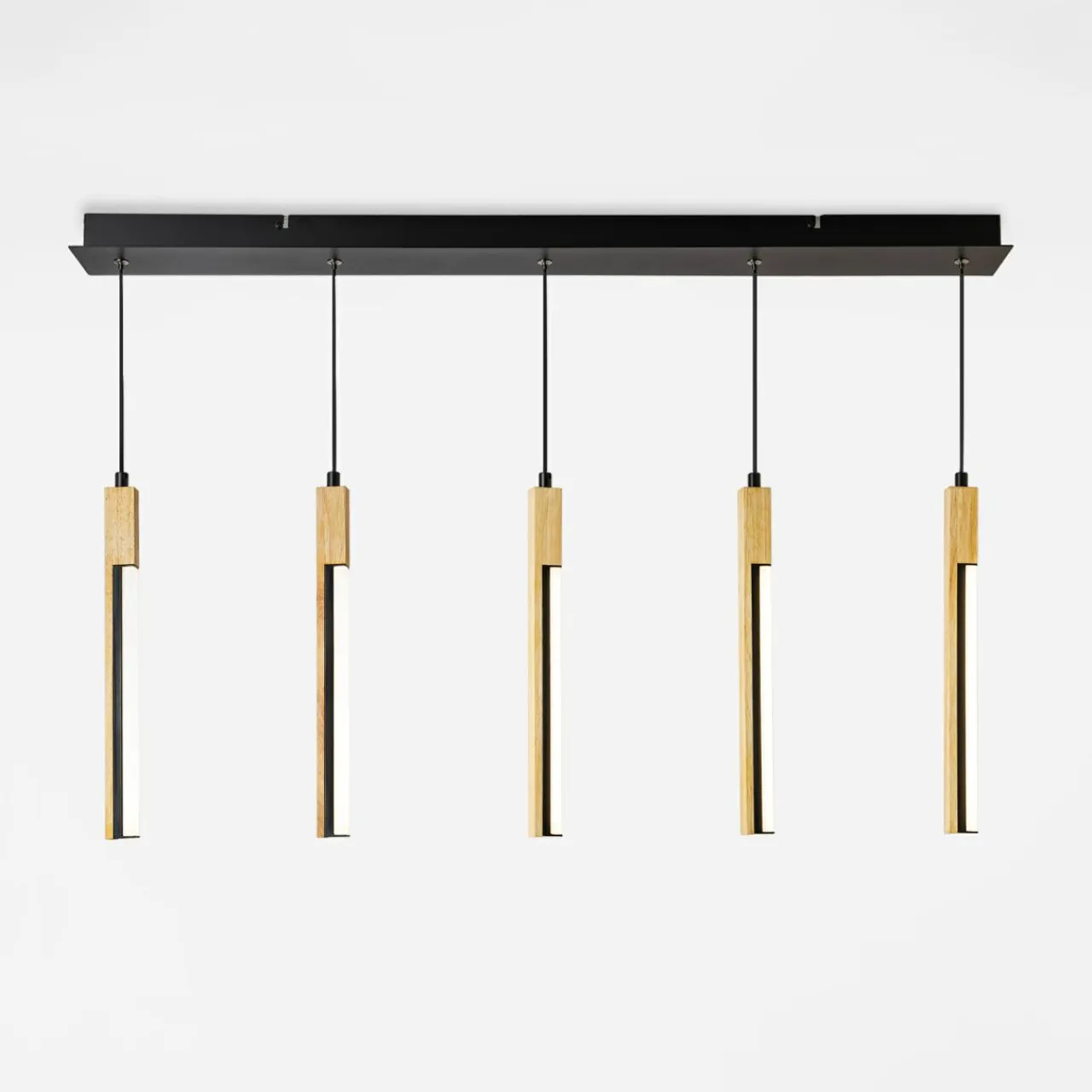 - 5 drewnianych elementów zawieszonych w szeregu na metalowej listwie tworzy wzór na podobieństwo dzwonków. Wykorzystaj ten niecodzienny design przy tworzeniu aranżacji z meblami i dodatkami w jasnym drewnie.