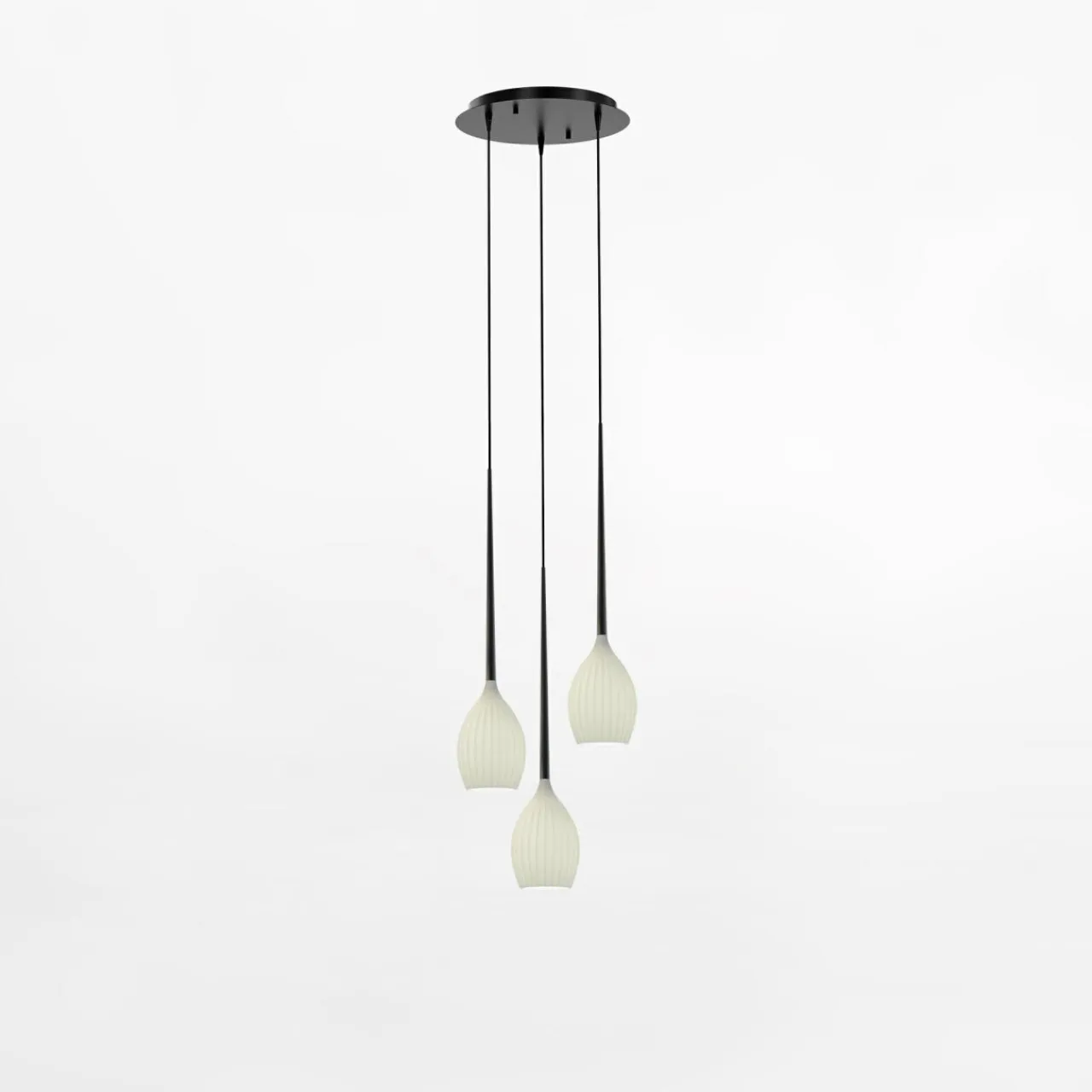 FIORE to rodzina lamp wiszących o smukłych, przypominających kielichy kloszach. Znajdziesz wśród nich modele pojedyncze i potrójne w bieli i czerni. Wystarczy więc dobrać wielkość i rodzaj do wystroju wnętrza.