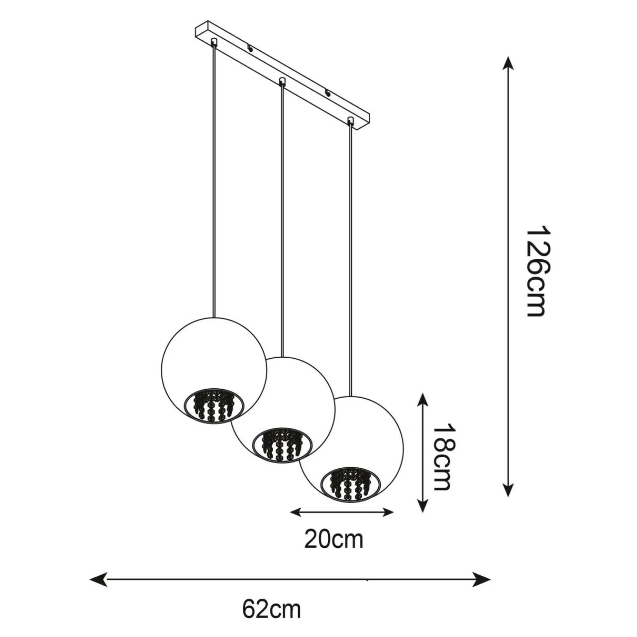 Lampa wisząca IVIA posiada oprawę dla trzech żarówek typu E27 o mocy maksymalnej 60W. Wysokość lampy można regulować w zakresie 20 – 120 cm.