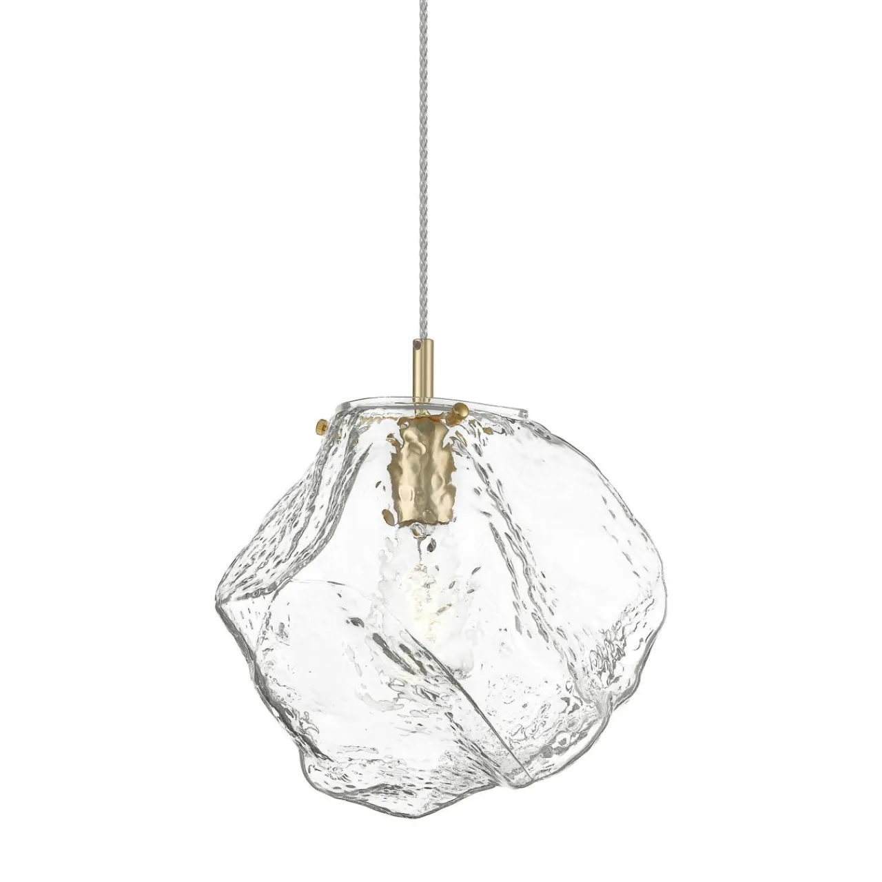 Przeźroczysty szklany klosz przywodzący na myśl fragment skały dodaje kolorytu i urokliwie wygląda w połączeniu z ozdobną żarówką. Podstawa lampy została wykonana z metalu. Na uwagę zasługuje wykończenie, które nadaje całości blasku i ciepła.