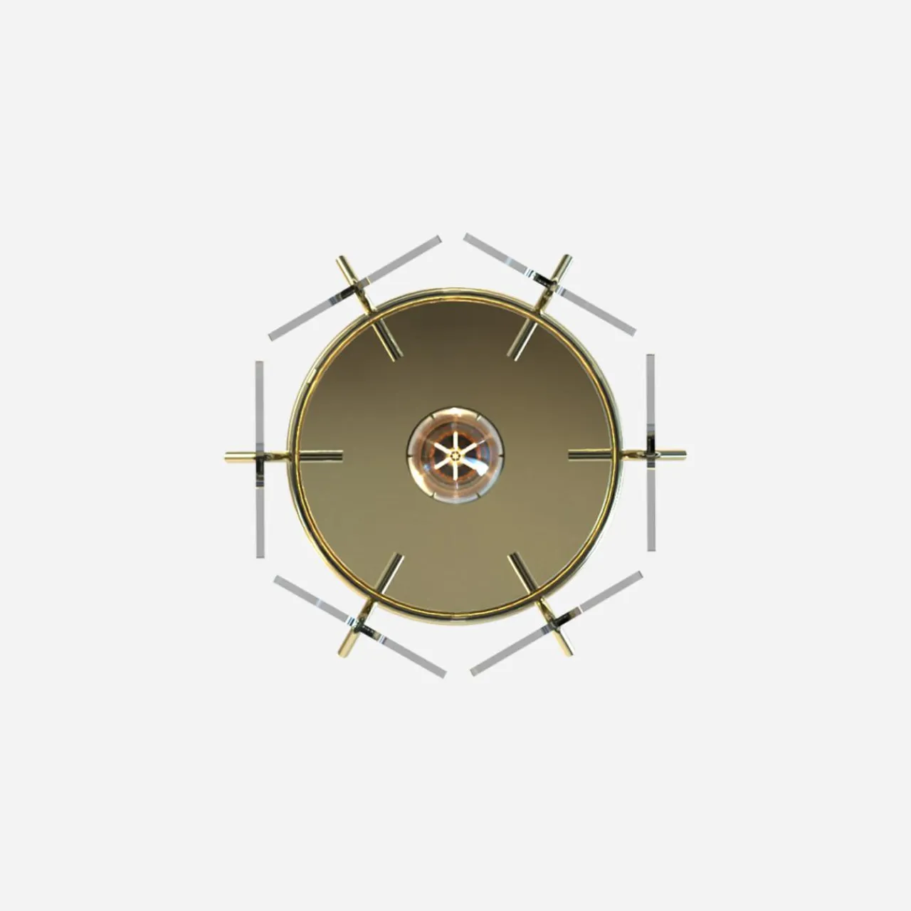 - Lampa posiada okrągłą podstawę i stelaż o złotym wykończeniu. Jej średnica to 16 cm, w sam raz, by rozświetlić przedpokój lub pokój o niewielkim metrażu.