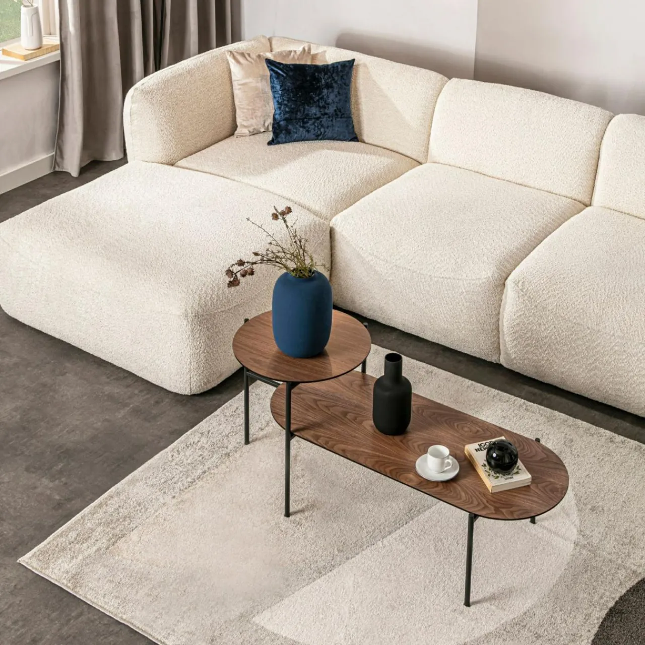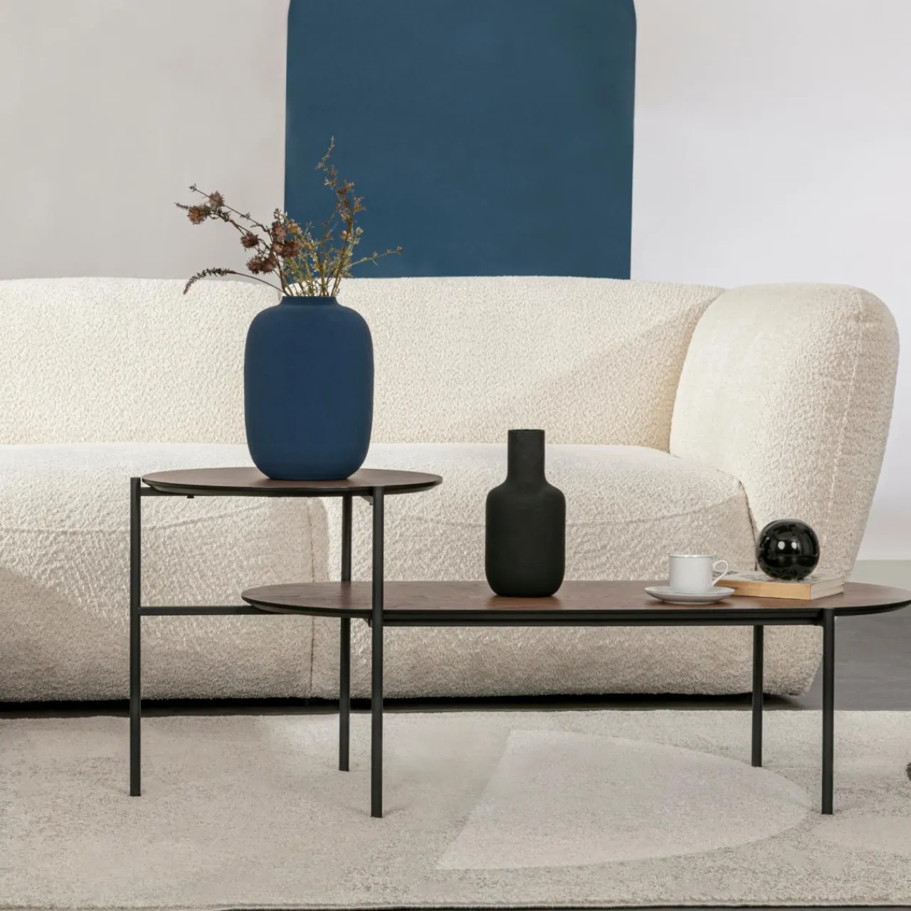 Zaokrąglone blaty ławy wpasują się w pokój urządzony zgodnie z trendem obłych kształtów.