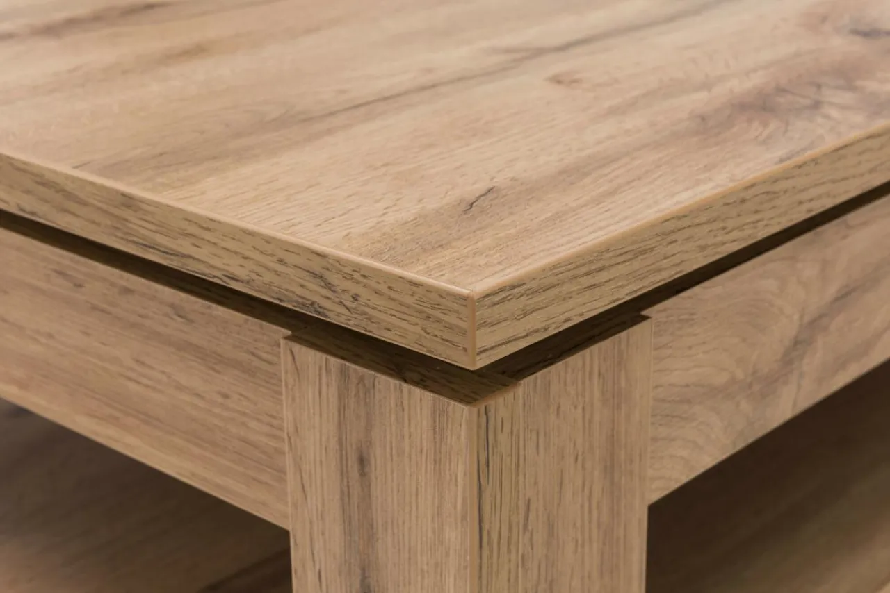 Ławę wykończono laminatem, imitującym strukturę drewna o ciepłej barwie „dębu wotan”.
