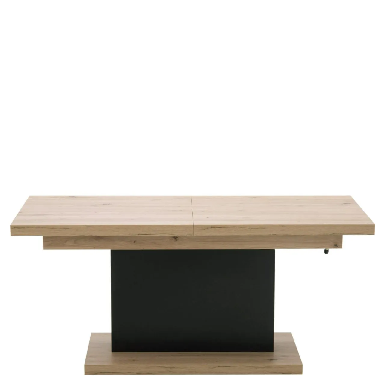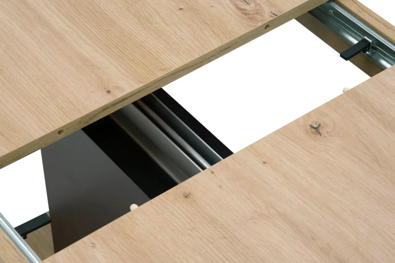 Wystarczy pociągnąć za jedną część blatu, by ten rozsunął się na boki ukazując 2 wkładki (1,8x30x65 cm), znajdujące się w oskrzyni mebla.