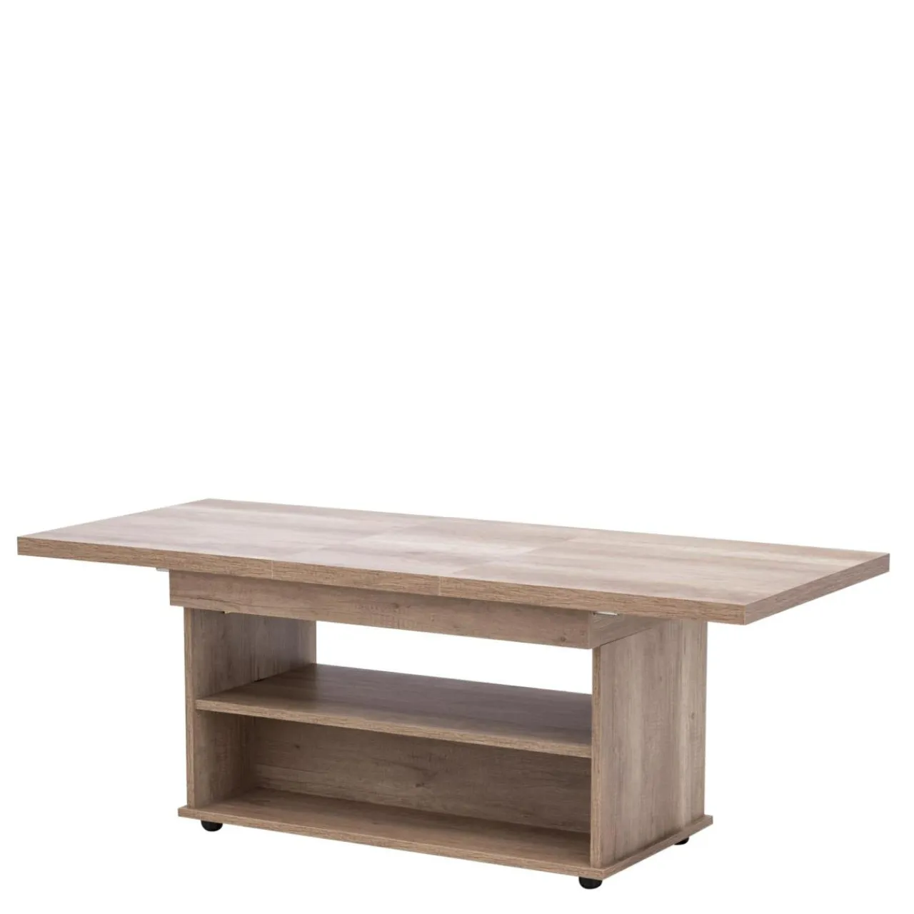 Funkcjonalny ławostół SIENA to elegancka i prosta forma do nowoczesnego wnętrza. W wersji złożonej mebel ten pełni funkcję stolika okolicznościowego, a po rozsunięciu i podniesieniu zmienia się w stół, na którym można wygodnie spożyć posiłek. Z łatwością dostosujesz wielkość blatu do bieżących potrzeb. Dodatkowo w dolnej części ławostołu znajduje się półka, na której przechowasz książki, piloty czy gazety.