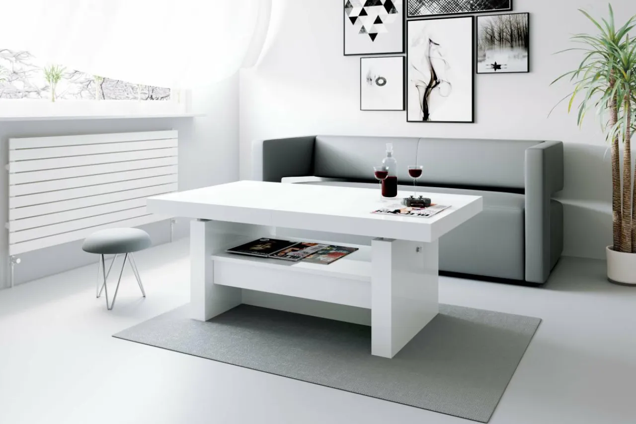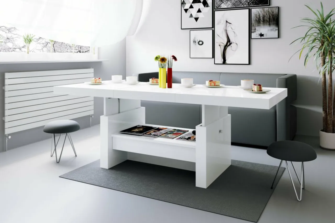Kiedy postanowisz zorganizować przyjęcie w salonie, bez problemu zwiększysz szerokość ławy do 170 cm i podniesiesz blat do wysokości 65 cm.