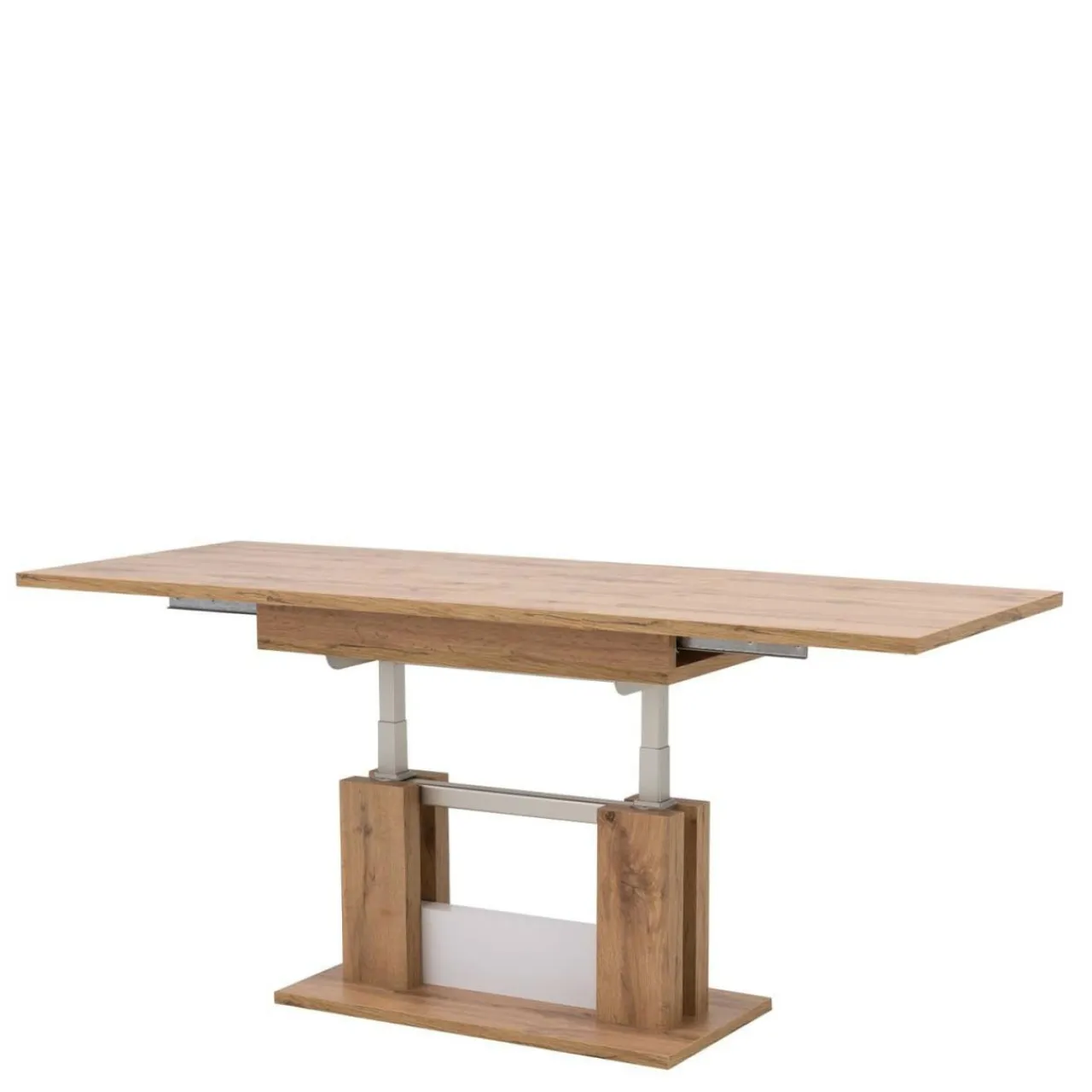 Jeśli wykorzystamy obie wkładki to ława zamienia nam się w szeroką na 170 cm ławę. Przy podniesieniu ławy na wysokość stołu dysponujemy już pełnowymiarowym stołem o wysokości 74 cm.