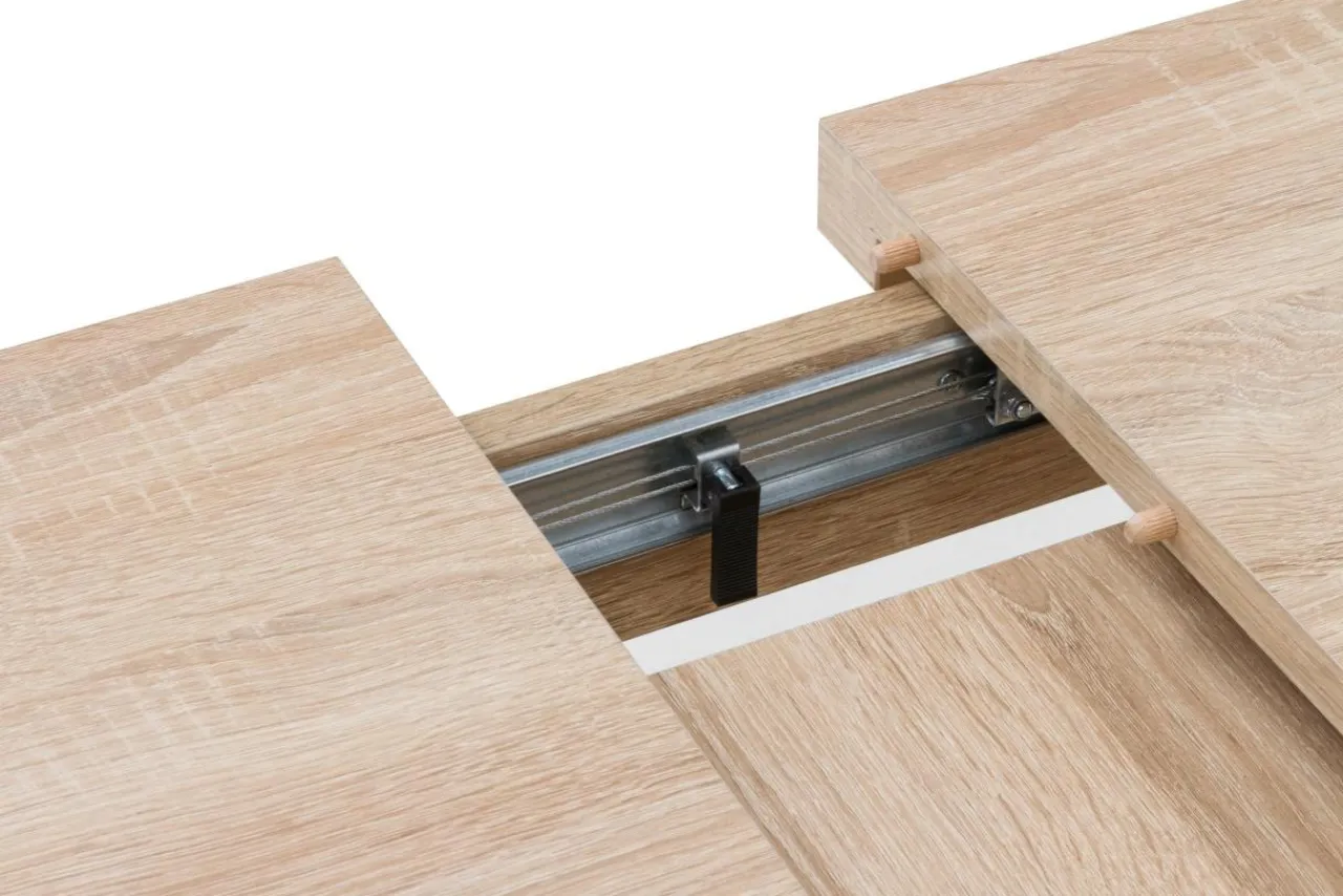 Ławostół rozkłada się niezwykle lekko za pomocą prowadnicy synchronicznej – wystarczy rozsunąć jedną część blatu, druga zacznie rozkładać się równolegle. Stolik jest podnoszony do wysokości 74 centymetrów, a za pomocą płyty pod blatem można go rozszerzyć do 156 cm.
