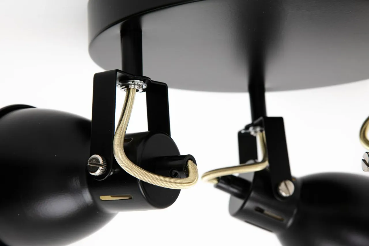 - Do czarnej, okrągłej podstawy lampy zostały dodane z 3 reflektory, których koncentryczne ustawienie równomiernie oświetla wnętrze.