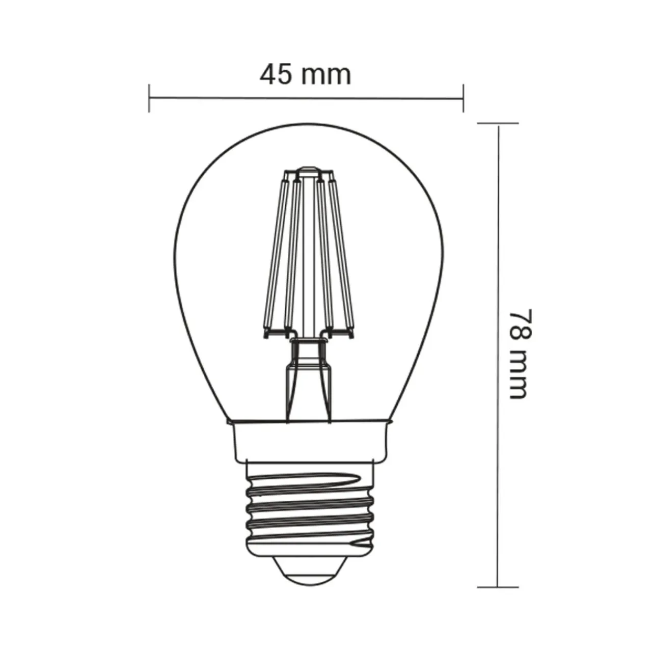 Żarówka ORO-E27-G45-FL-CLARO emituje światło o ciepłej temperaturze barwowej 2700K. Jej strumień świetlny wynosi 400 lumenów.
