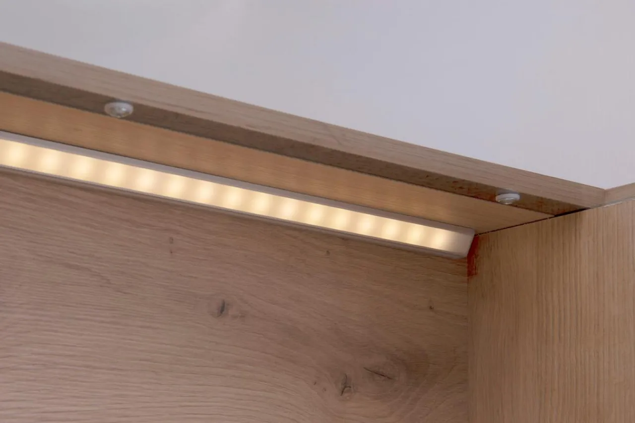 - Nowoczesny design i połączenie bieli z kolorem drewna wprowadza do pomieszczenia przytulny klimat.