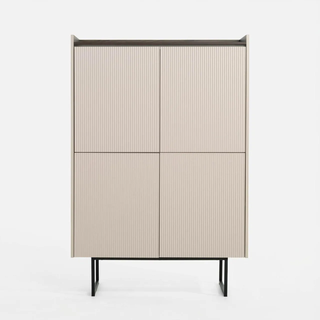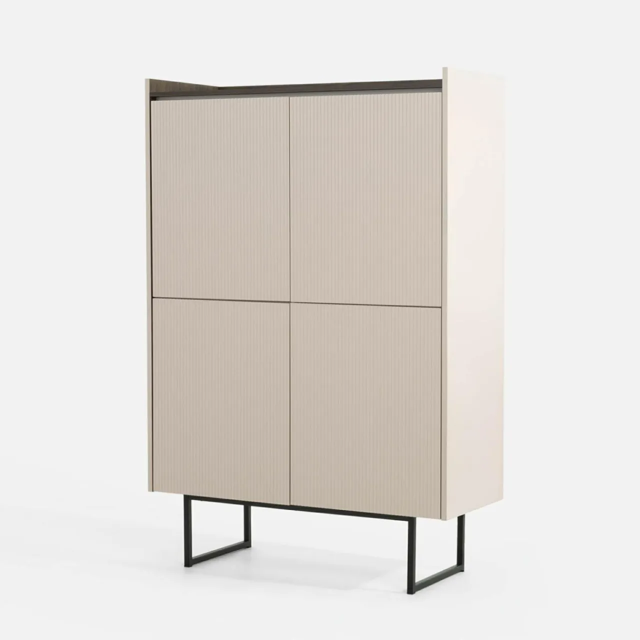 Wysoka komoda LAGO odnajdzie się w salonie lub jadalni. 4 drzwi kryją za sobą mnóstwo miejsca na dokumenty, obrusy czy zapasową pościel.