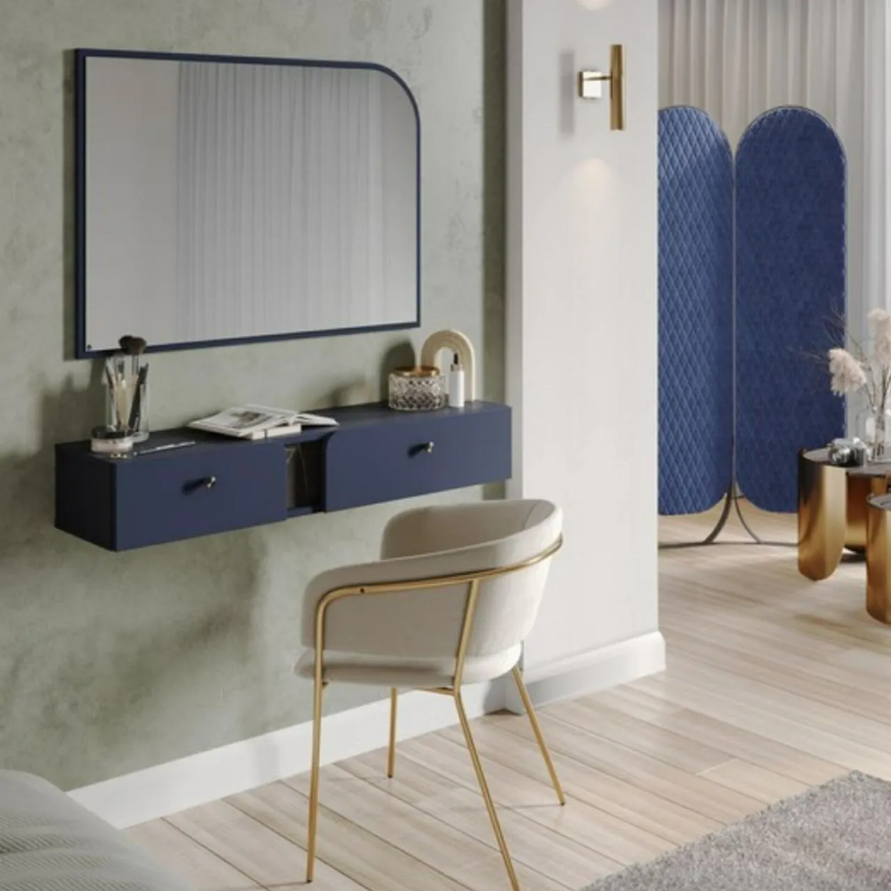 - Granatowe meble to propozycja dla osób, które lubią wyraziste barwy i eleganckie wnętrza.