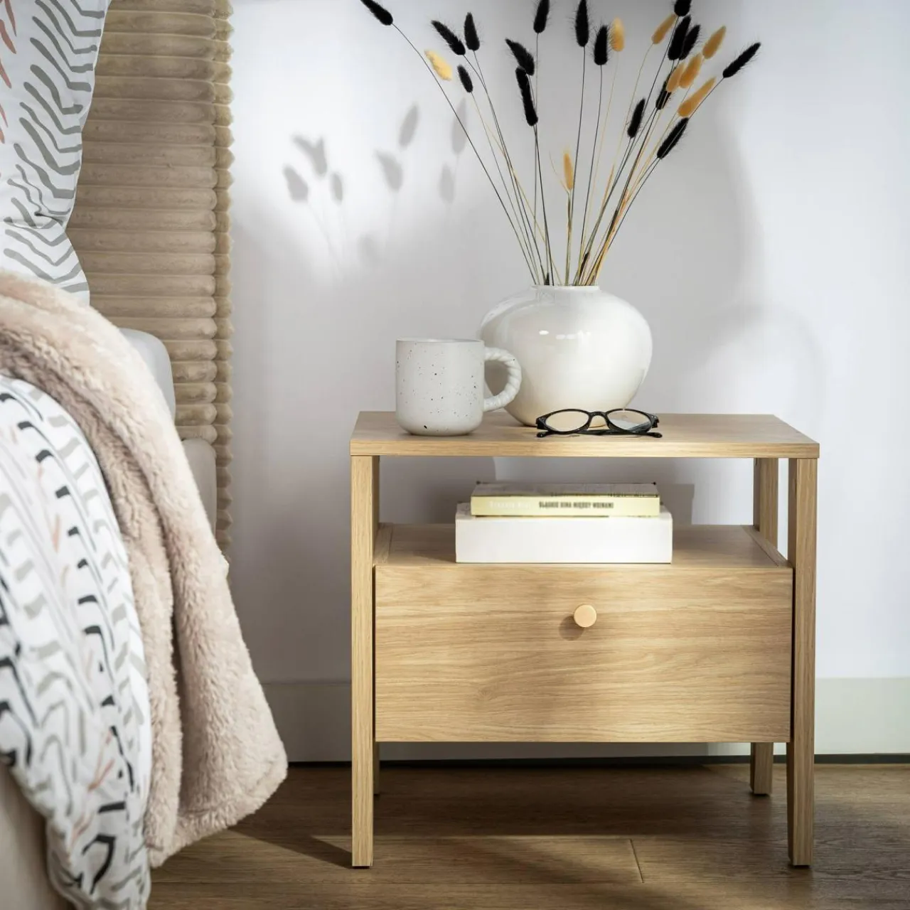 - 1 szuflada – zapewnia wystarczająco dużo miejsca na drobne akcesoria, takie jak ładowarki, książki czy okulary, aby mieć je zawsze pod ręką.