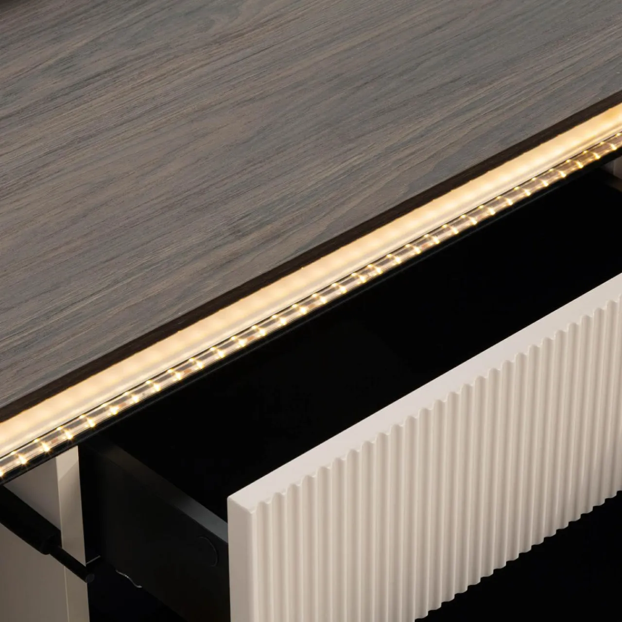Subtelne podświetlenie listwą LED to opcja w cenie. Stonowane światło nie będzie męczyło oczu, szczególnie wieczorami.