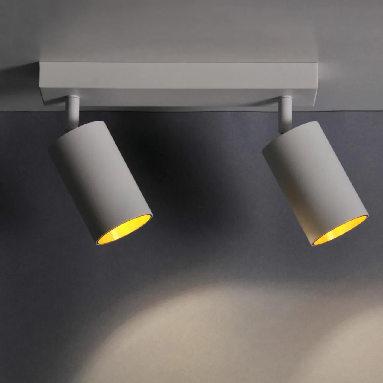 Podstawa i klosz 2-punktowego reflektora MARIBEL zostały wykonane z lekkiego aluminium, możesz go więc zamontować na ścianie lub podwieszanym suficie.