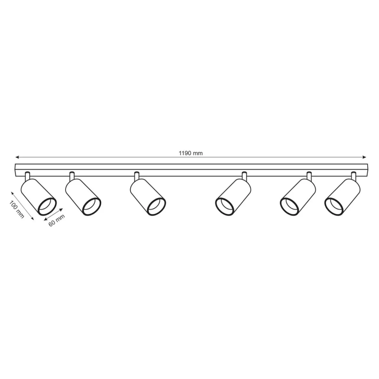 Listwa 6-punktowa MARIBEL posiada oprawę przeznaczoną dla żarówek typu GU10 o mocy maksymalnej 10W.