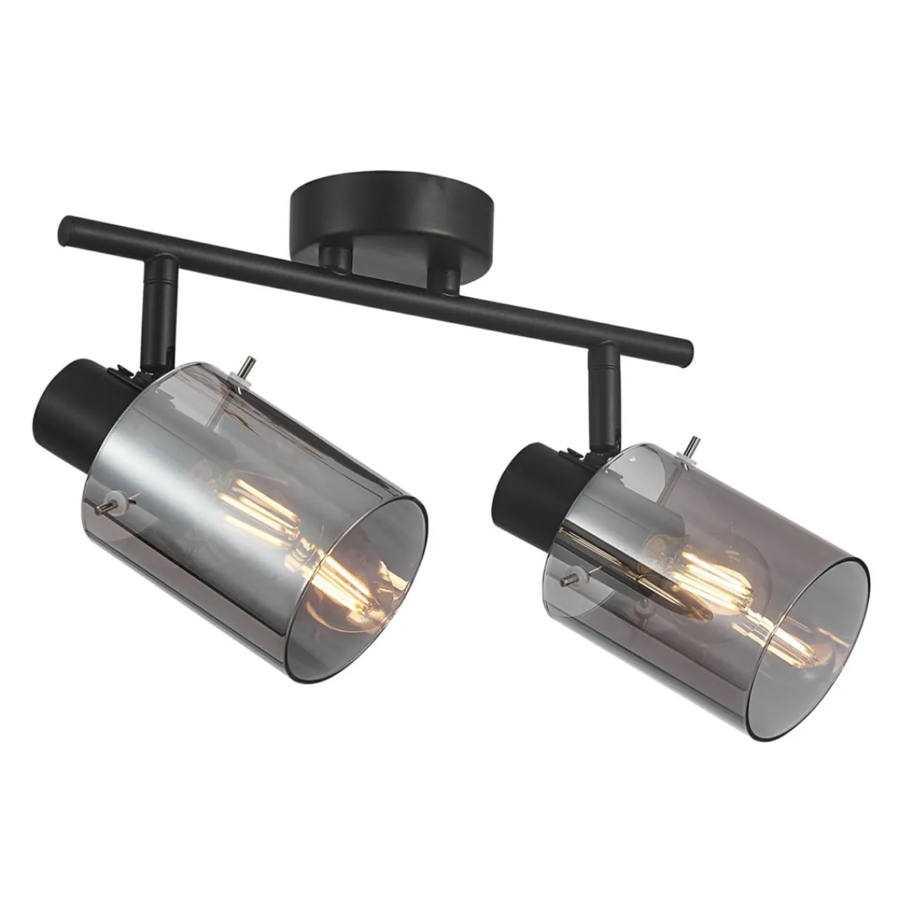 Jego wykończenie, łączące przydymione szkło kloszy z matową czernią oprawy dopasujesz do większości wnętrz.