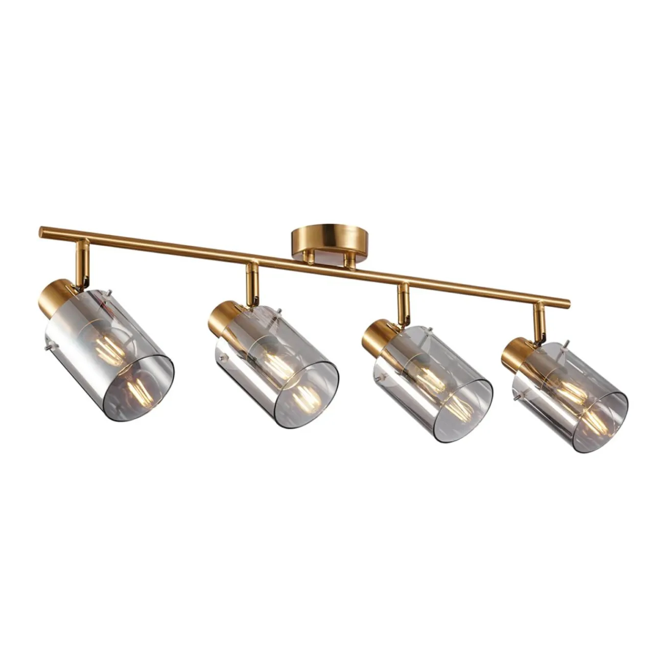 - Wykończenie spotu SARDO łączące przydymione szkło kloszy z ciemnym złotem oprawy dopasujesz do wnętrz z pogranicza estetyki nowoczesnej, loftowej i retro.
