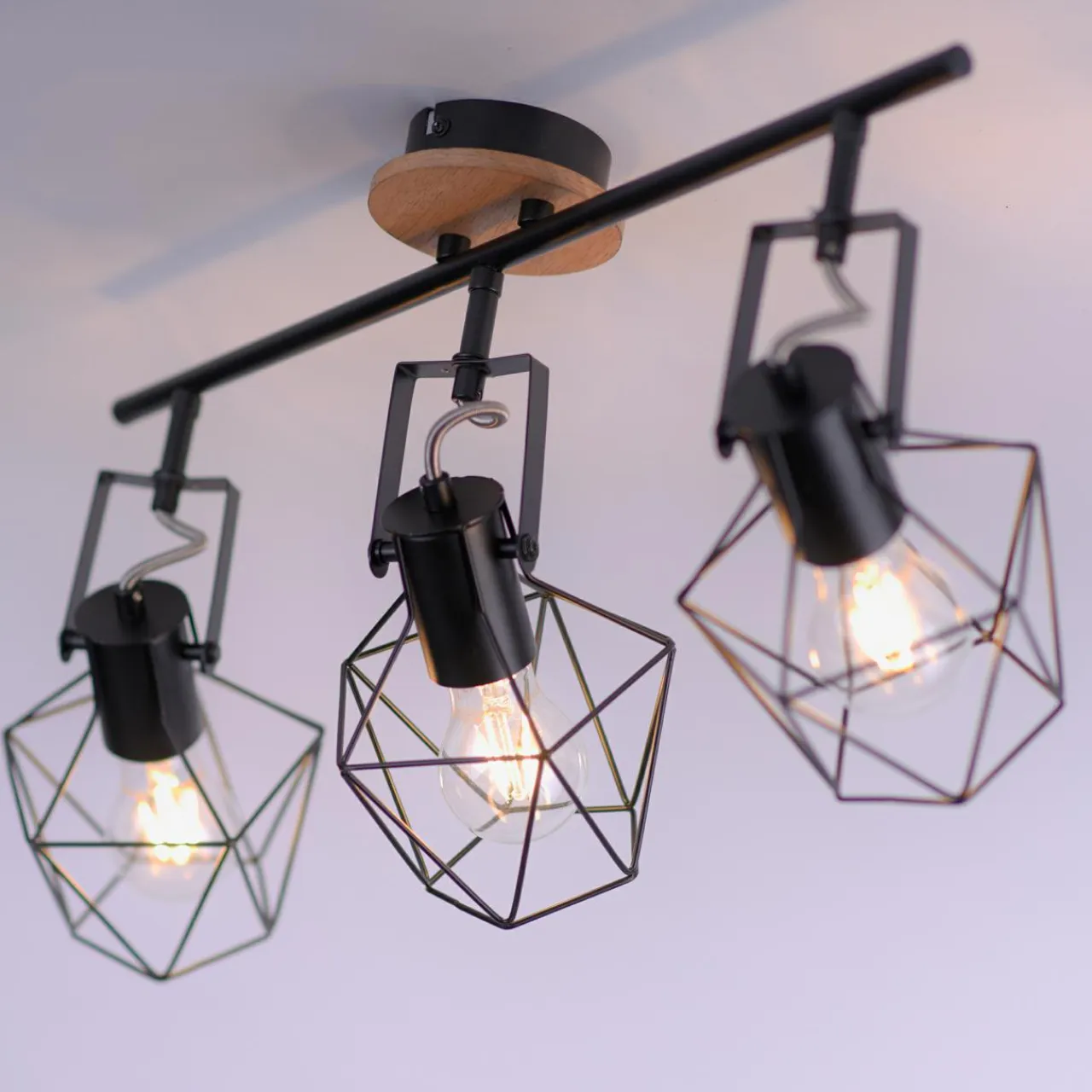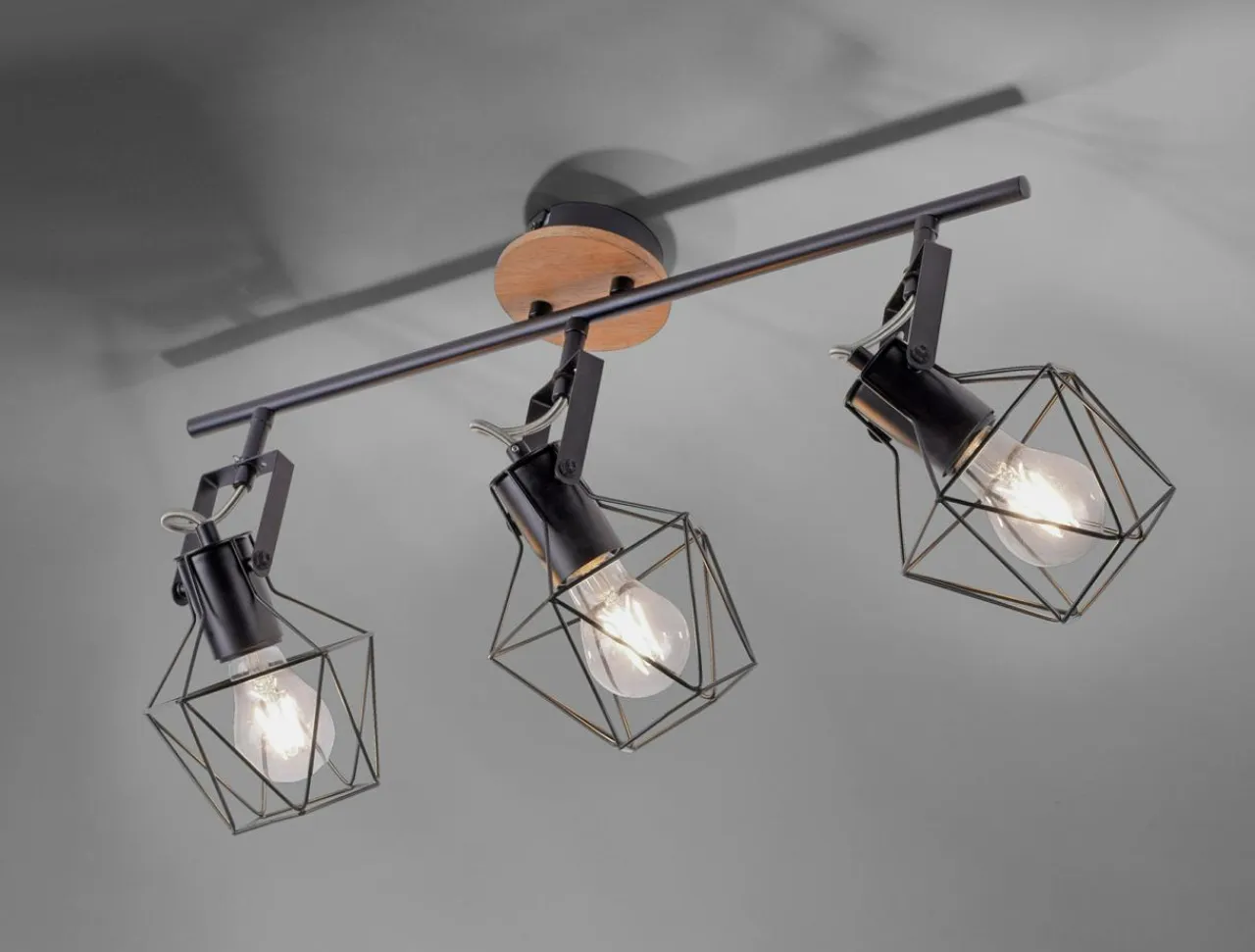 Posiada niecodzienny design, który łączy metalową obudowę z drewnianymi elementami. Ocieplają one nieco ocieplają design lampy oraz dodają odrobiny naturalności do surowej, czarnej oprawy.