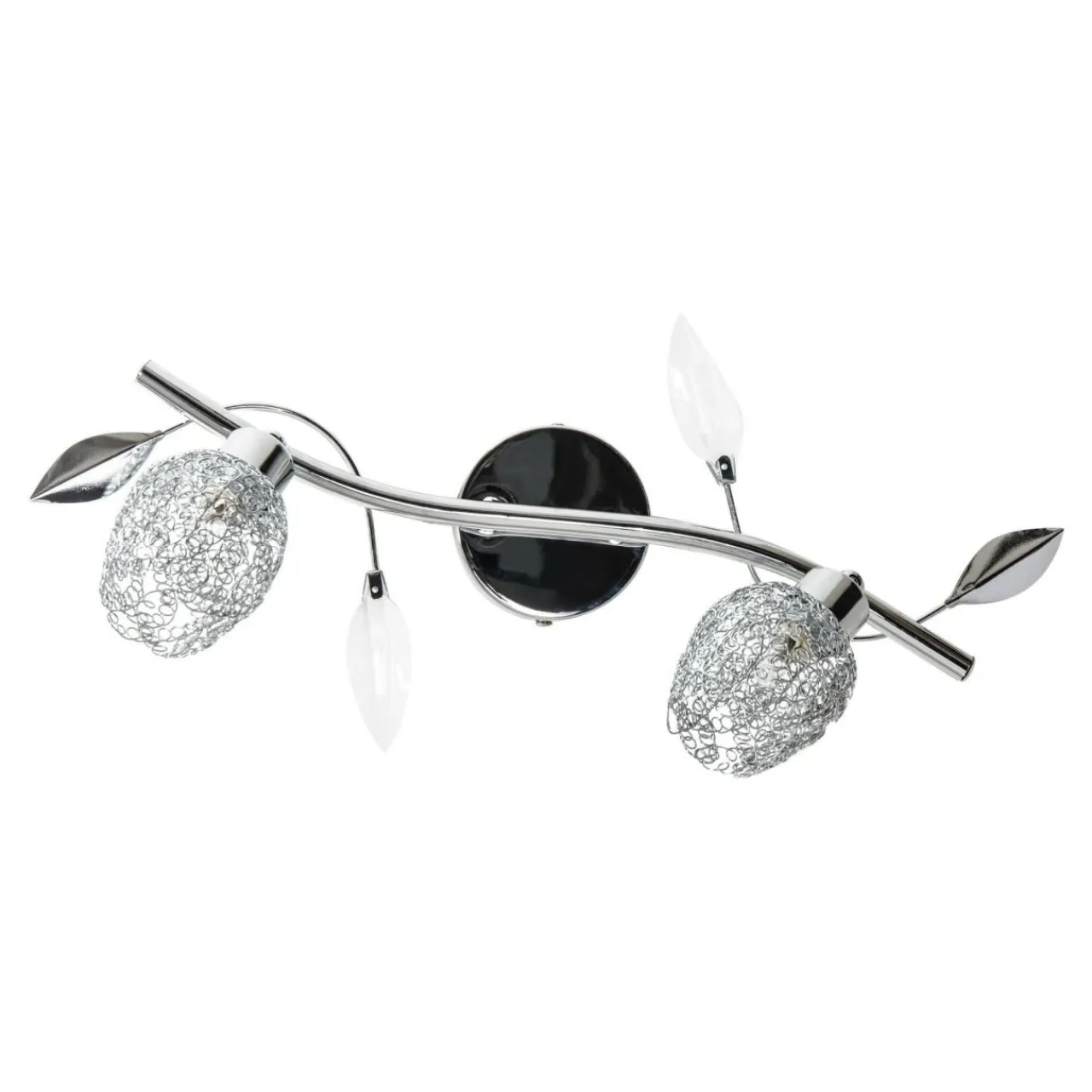 Bardzo urokliwie prezentuje się zarówno jako oświetlenie przedpokoju, jak również w salonie, jadalni, sypialni oraz gabinecie. Posiada metalową, wykończoną chromem podstawę zdobioną charakterystycznym motywem roślinnym. Całość zdobią dwa klosze z akrylu w kształcie kwiatów o rozchylonych płatkach. Jego ozdobny charakter sprawia, że świetnie wygląda w połączeniu z klasycznymi wnętrzami utrzymanymi w jasnej kolorystyce.