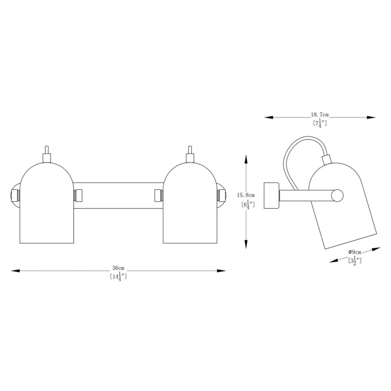 Listwa 2-punktowa ARIES posiada oprawę dla żarówki typu E27 o mocy maksymalnej 40W.