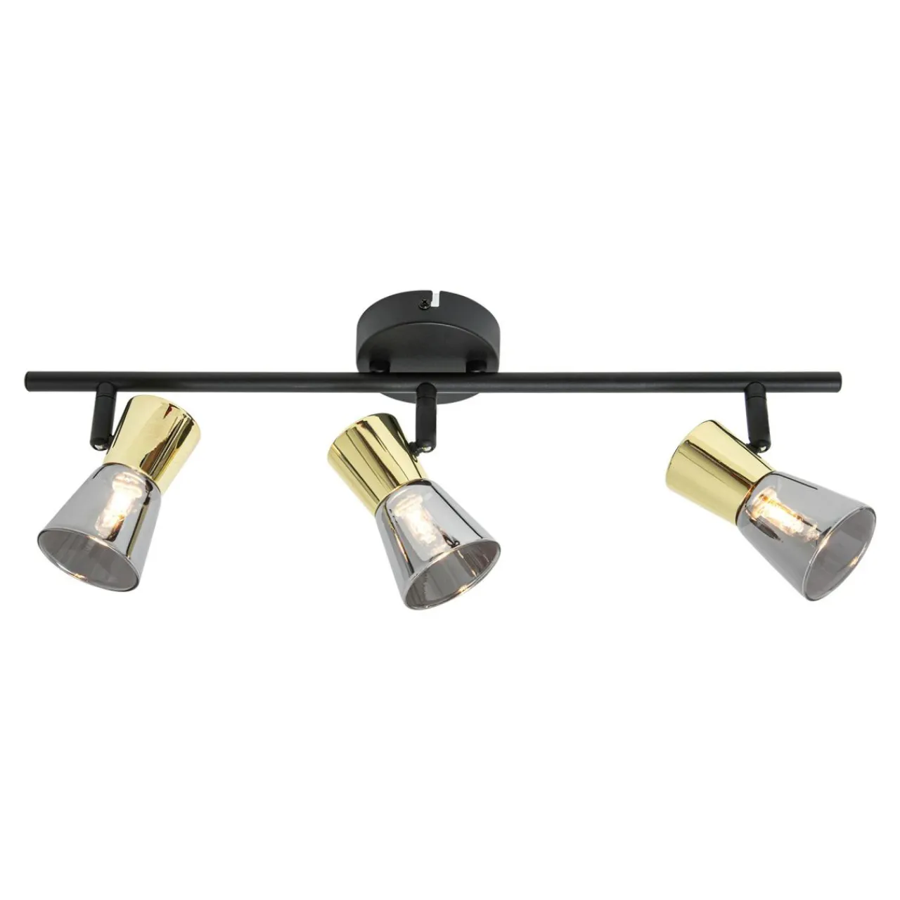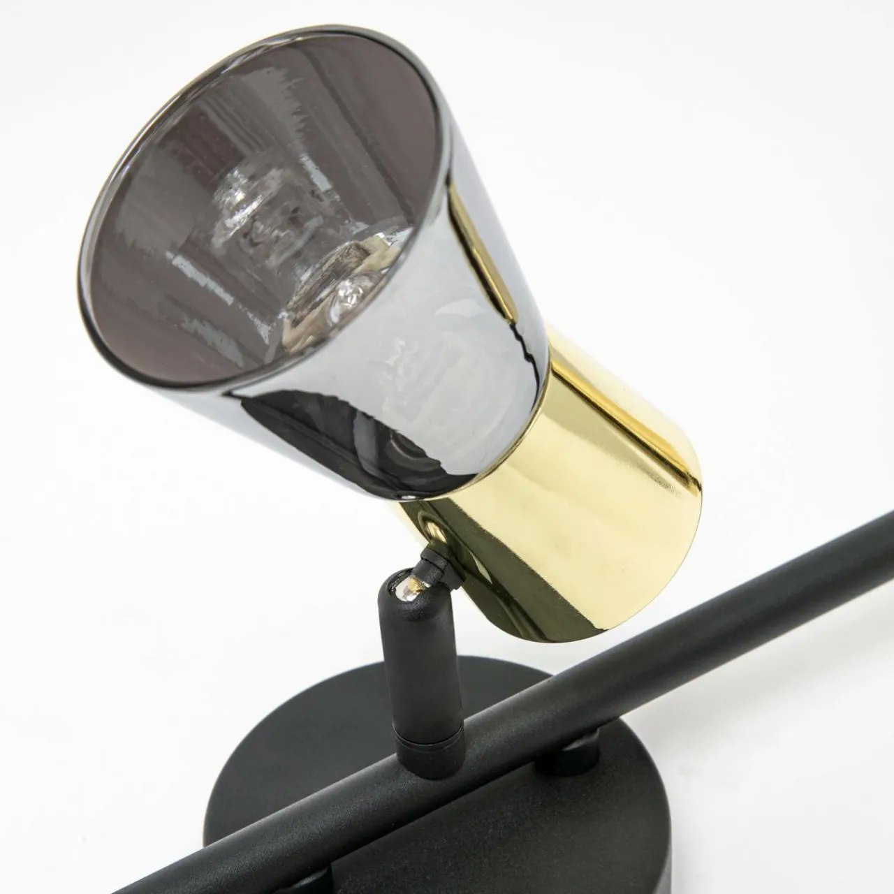 Listwa CENTO posiada czarną, okrągłą podsufitkę i listwę z 3 podwieszonymi reflektorami. Głowica lampy mają kształt zbliżony do klepsydry, w której górna część jest wykończona złotym kolorem, natomiast dolną stanowi transparentny klosz z przyciemnionego szkła.