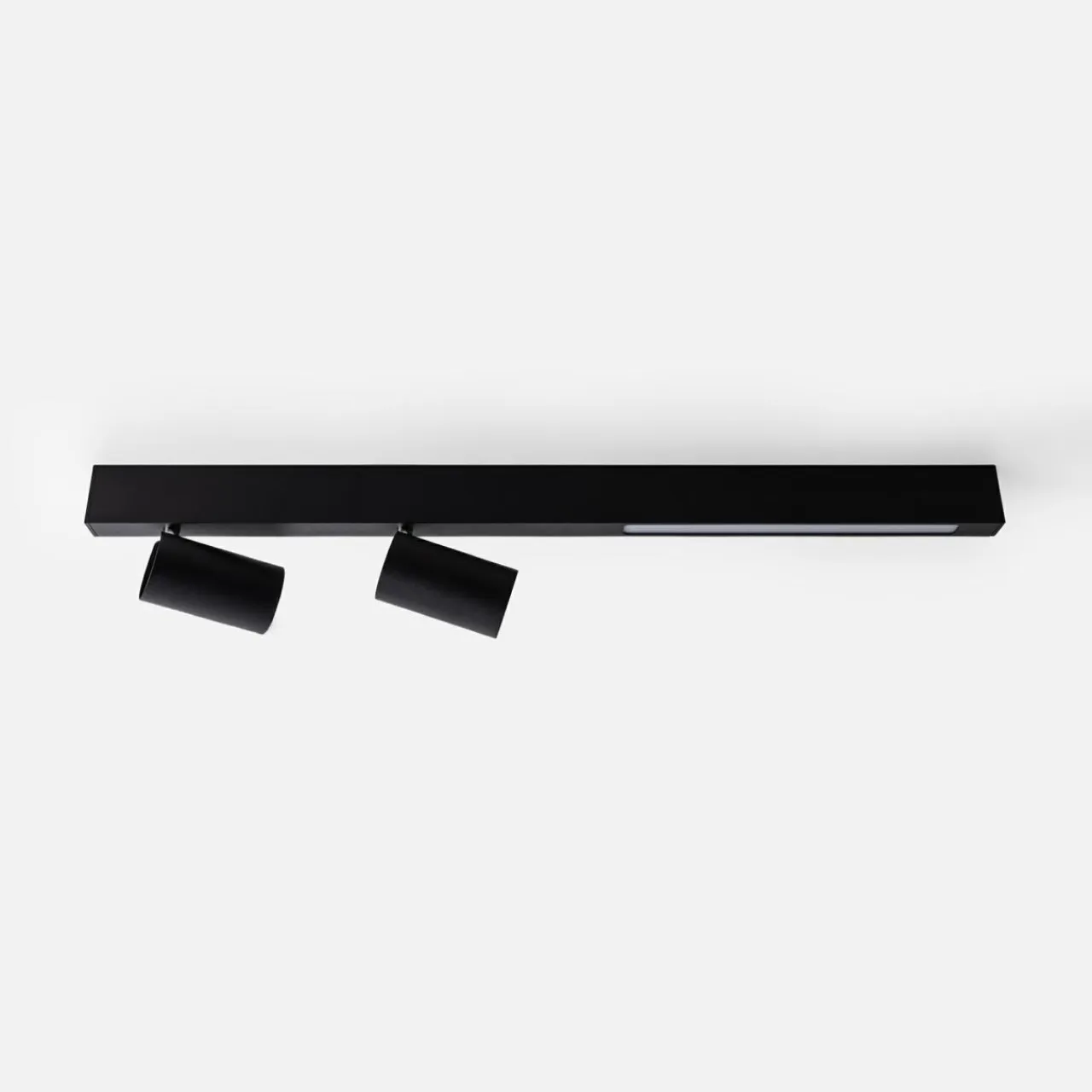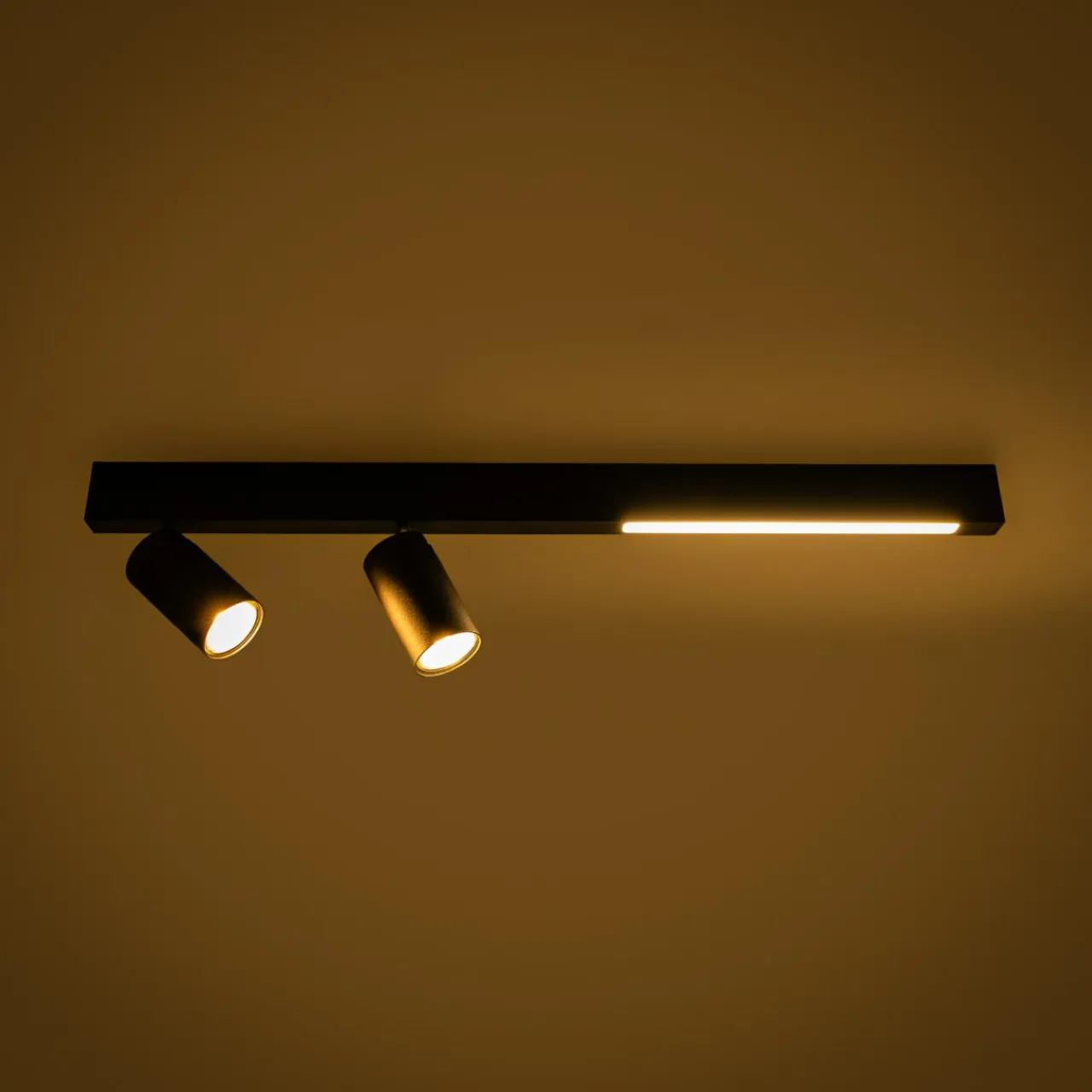 - MANNARI zwraca uwagę wyglądem – do prostej, czarnej listwy z wbudowanym LED zostały podłączone 2 reflektorki.
