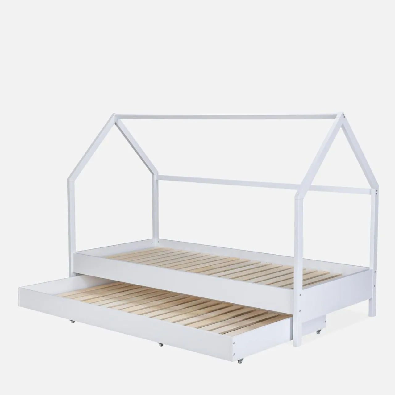 Odpowiednie do małego pokoju i idealne dla rodzeństwa – takie jest łóżko FABELA. Wyglądem przypomina ramę domu, więc pomoże stworzyć urokliwy kącik do spania dla dwójki dzieci.Powieście na nim koc lub prześcieradło – zamieńcie zwykłe łóżko w kryjówkę na przytulanki i pozostałe zabawki.