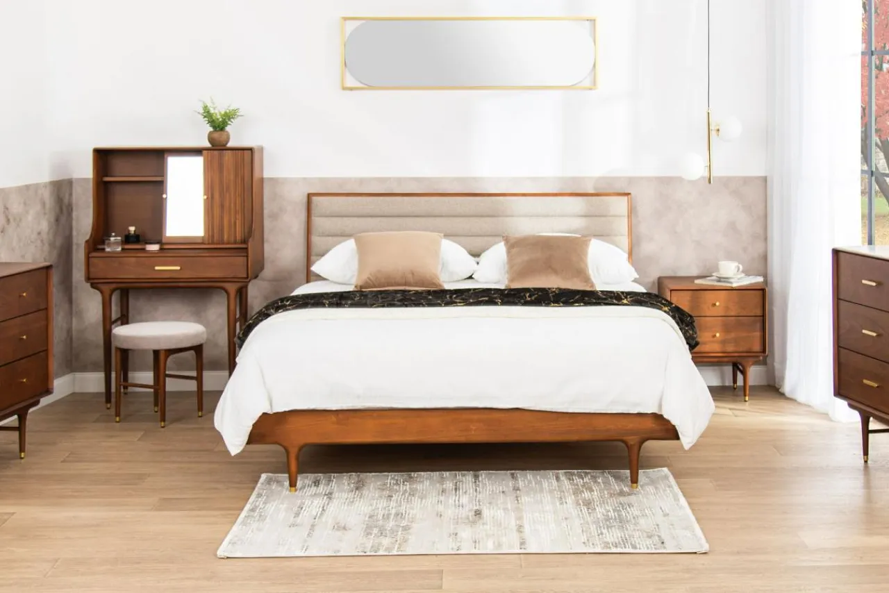 - Wezgłowie od tyłu zabudowane jest litym drewnem, dzięki czemu możesz postawić łóżko w dowolnym miejscu w sypialni.